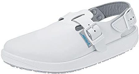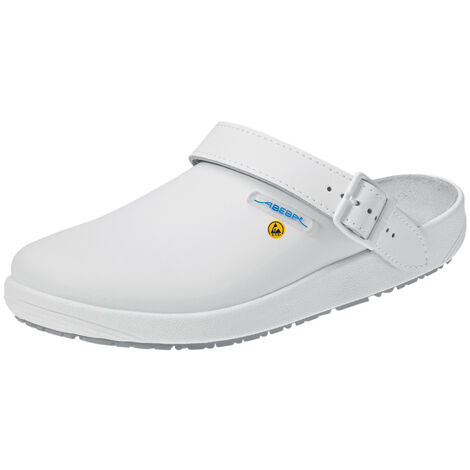 Für alle, die sicheren Stand bei der Arbeit brauchen - die Abeba Rubber Sicherheitsschuhe in Weiß sind genau das Richtige! Aus robustem Glattleder mit rutschhemmer Gummi-Laufsohle und antistatischen Eigenschaften. Die PU-Zwischensohle sorgt für angenehmen Tragekomfort, der verstellbare Fersenriemen für perfekten Halt. Ob im Handwerk, Labor oder Industrie - mit diesen Schuhen bist du sicher unterwegs und siehst dabei noch gut aus! Perfekte Arbeitskleidung für anspruchsvolle Umgebungen.