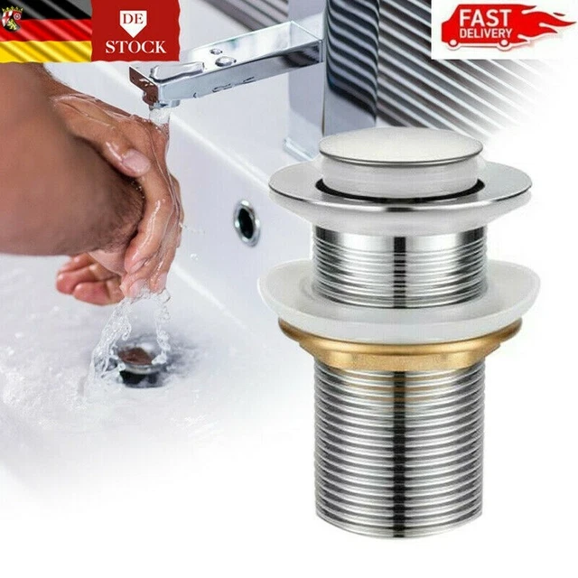 Dein Waschbecken braucht ein neues Ablaufventil? Dieses Pop Up Modell ist die perfekte Wahl! Aus hochwertigem Edelstahl - rostfrei, kratzfest und hitzebeständig. Mit praktischer Click-Clack Funktion: einmal drücken - zu, nochmal drücken - auf! Super einfach. Passt für Waschbecken mit Überlauf und hat 1 1/4 Zoll Gewinde - kompatibel mit allen gängigen Siphons. Maße: 9cm hoch, 6,6cm Deckeldurchmesser. Einfache Selbstmontage ohne Profi-Werkzeug. Wichtig: Lochdurchmesser im Becken sollte 40-55mm sein und rund. Dichtungen aus Silikon sorgen für perfekte Abdichtung. Macht dein Badezimmer wieder komplett und funktioniert einfach tadellos!