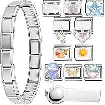 Gestalte dein eigenes Armband! Diese Italian Charm Module von arrderly geben dir maximale Freiheit. Aus hochwertigem Titanstahl - rostfrei und langlebig. Mit süßem Blumen-Design in Silber. Kompatibel mit den meisten 9mm Gliederarmbändern. Einfach zu montieren und zu wechseln - Demontage-Werkzeug liegt bei. Perfekt um deinen persönlichen Stil auszudrücken. Ob einzeln oder kombiniert - du bestimmst das Design. Ein tolles Geschenk für Schmuck-Liebhaberinnen!