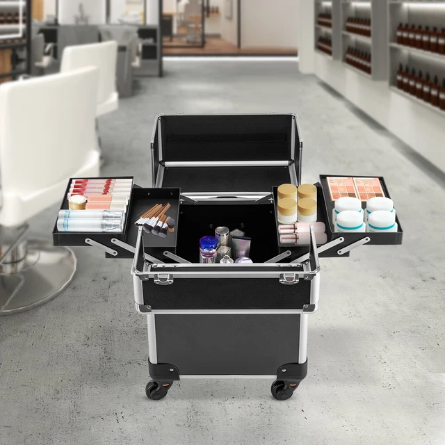 Professioneller Kosmetikkoffer Schwarz - Abschließbarer Make-up Organizer Mit 4 Fächern