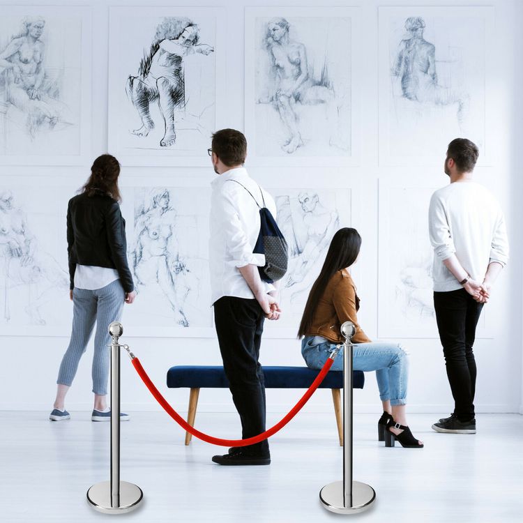Absperrständer Set Mit Samtseilen - 4 Edelstahl Pfosten Mit Kugelkopf Für Warteschlangen