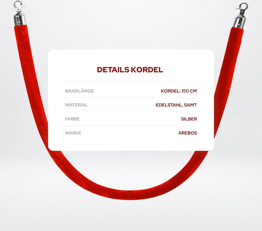 Für mehr Ordnung und Stil bei deinen Events! Dieses hochwertige Absperrset besteht aus 4 schwarzen Edelstahl-Pfosten und 3 eleganten Samtseilen. Jeder Pfosten ist 96 cm hoch und aus robustem 201er Edelstahl gefertigt - absolut korrosionsbeständig und witterungsbeständig. Die Zinklegierung-Kugel oben drauf gibt dem Ganzen eine edle Note. Die Samtseile sind 1,5 Meter lang und 28 mm dick, aus strapazierfähigem Flanell-Material, das nicht so leicht reißt. Die Montage ist supereinfach: Einfach die Haken an den Seilenden in die Adapter an den Pfosten einhängen - ohne Werkzeug, ohne Stress! Die Metallfüße sind stabil und kratzen nicht den Boden. Perfekt für Hotels, Theater, Casinos, Hochzeiten oder Galerien. Sieht nicht nur professionell aus, sondern hält auch Menschenmengen problemlos stand. Mach deine Veranstaltung zu etwas Besonderem mit dieser klassischen Absperrung!