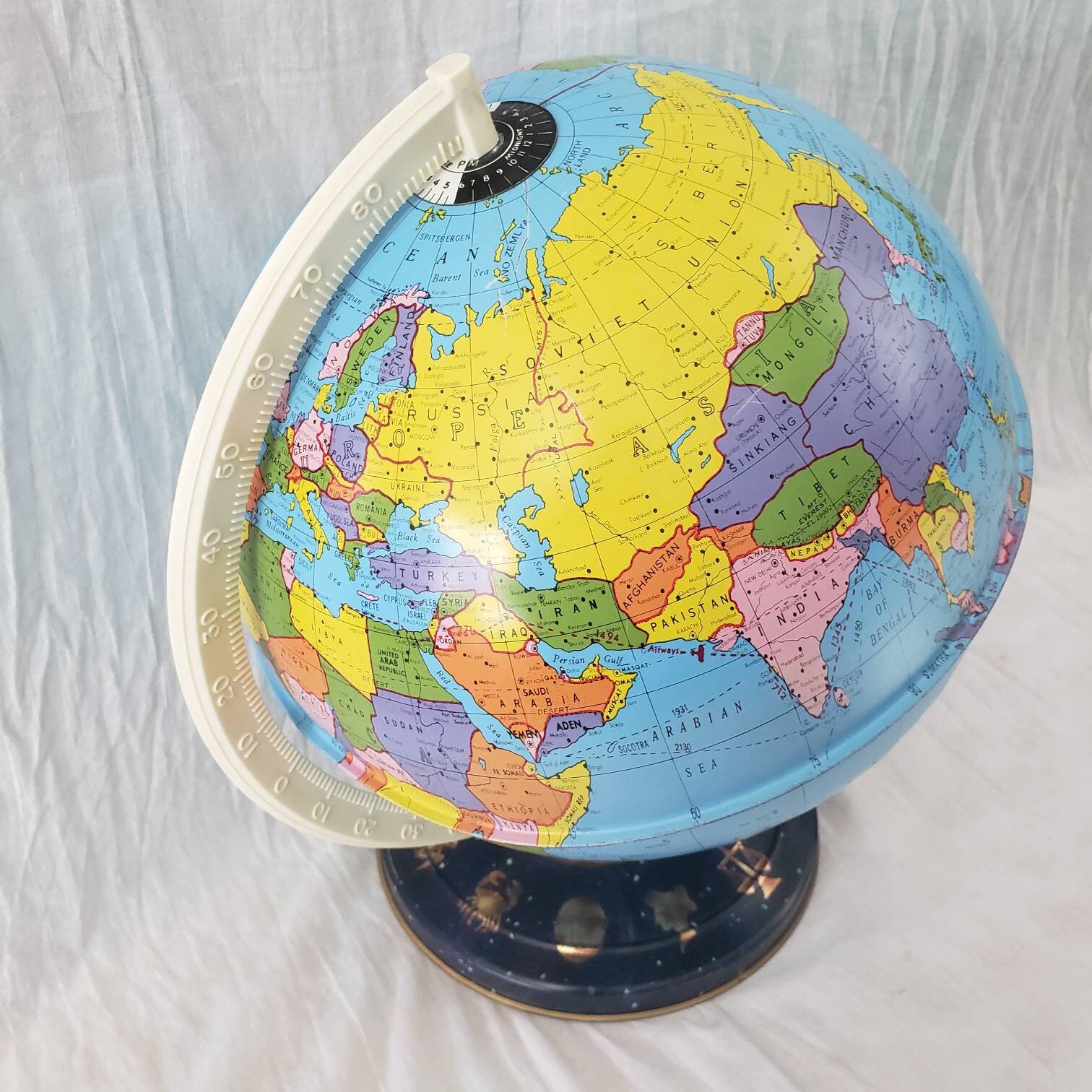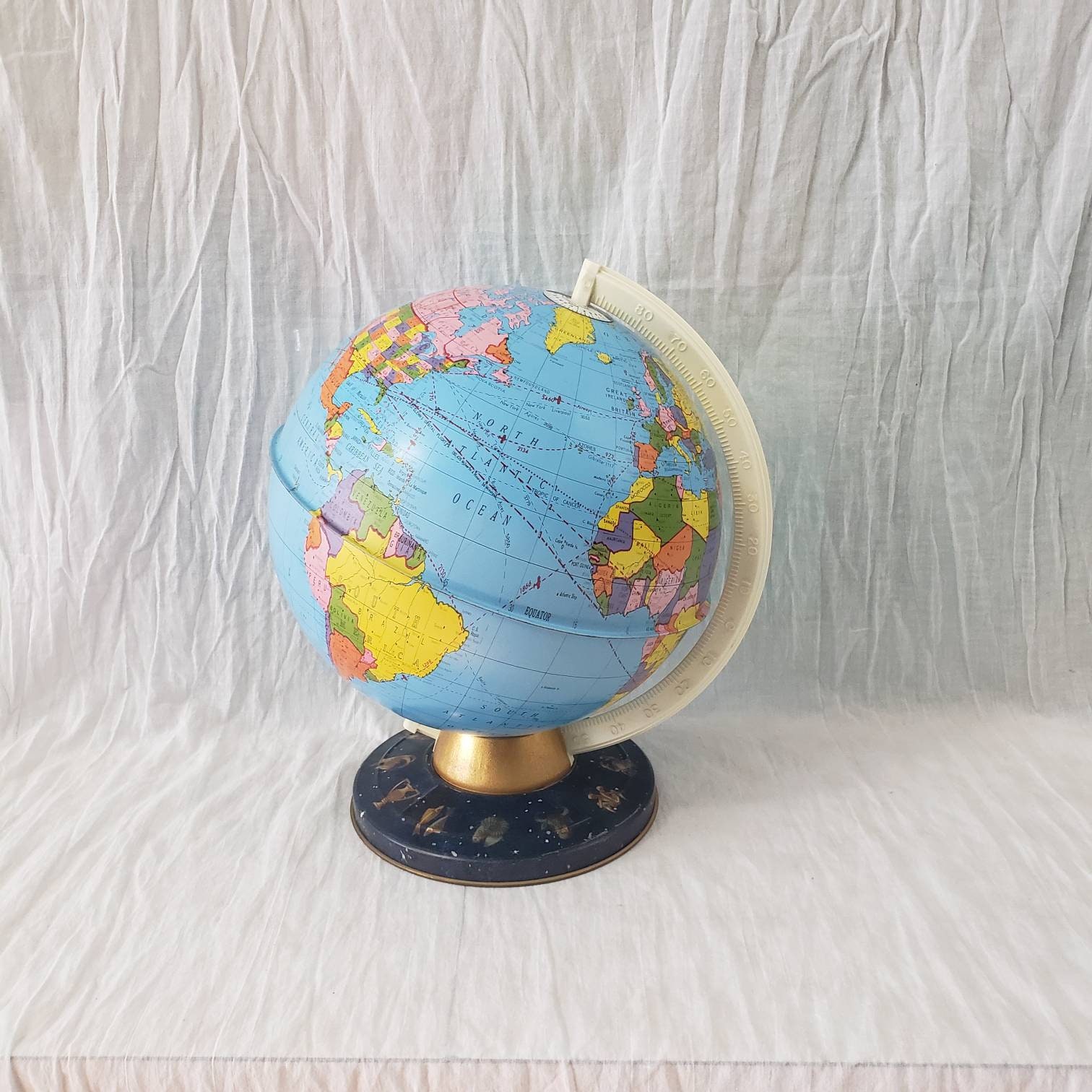 Diese atemberaubende Globus-Skulptur in Schwarz-Gold wird zum absoluten Eyecatcher! Das moderne Design mit filigranen Ringen und Marmor-Struktur veredelt jeden Raum. Der Metall-Globus dreht sich sanft um 360° und wird von einem stabilen, quadratischen Sockel getragen. Perfekt für Wohnzimmer, Büro, Hotel oder Café. Die hochwertige Verarbeitung mit Handpolitur und manueller Schweißung garantiert Langlebigkeit. Ein besonderes Geschenk für Einzug, Geburtstag oder Weihnachten. Verleiht deinem Zuhause das gewisse Etwas und zeigt deinen stilvollen Geschmack!
