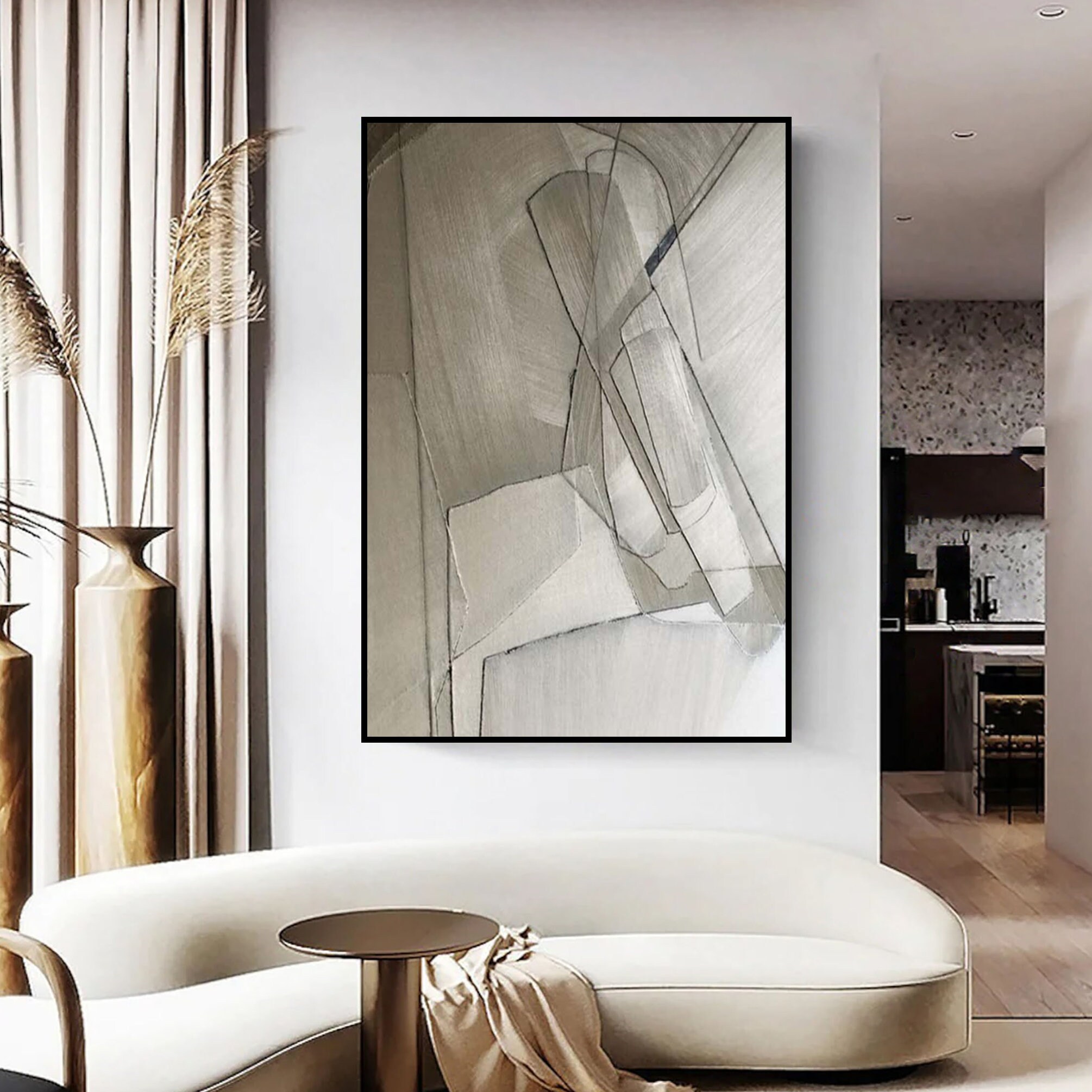 Moderner Eyecatcher für deine Wände! Dieses großformatige Leinwandbild im Format 80x160cm überzeugt mit seinem minimalistischen Design in Beige und Schwarz. Die abstrakte Komposition passt perfekt in moderne Einrichtungsstile. Hochwertiger Druck auf echter Leinwand mit lebendigen Farben. Der stabile Holzrahmen ist bereits montiert - einfach aufhängen und genießen! UV-beständig und wasserabweisend für langanhaltende Freude. Perfekt für Wohnzimmer, Schlafzimmer oder Büro. Ob als Geschenk oder für die eigenen vier Wände - dieses Bild setzt eindrucksvolle Akzente. Verwandele deine Wände in eine Galerie!