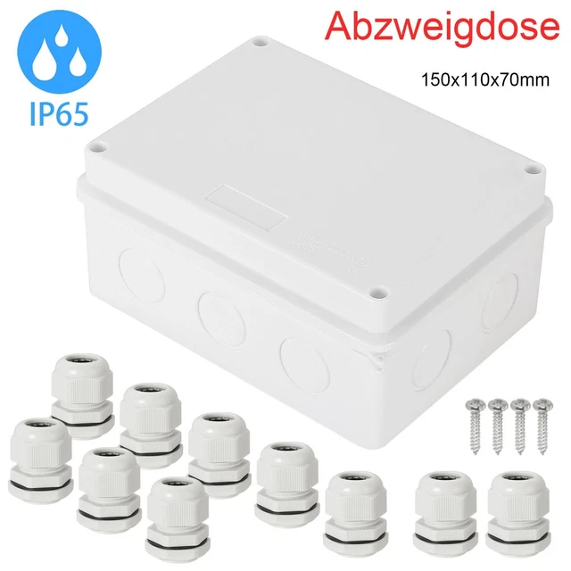 Sicher und praktisch! Diese MOERAE Abzweigdose ist absolut wasserdicht (IP65) und perfekt für drinnen und draußen. Maße: 150x150x90mm, aus robustem ABS-Material, korrosions- und hitzebeständig. Mit transparentem Deckel aus PC - siehst immer was drin passiert! Einfache Montage dank vorgebohrter Löcher, mit praktischem Schnappverschluss und zusätzlichem Sicherheitsloch für Vorhängeschloss. Ideal für Elektro-Installationen im Garten, an der Fassade, in Werkstätten oder auf Baustellen. Schützt Kabelverbindungen zuverlässig vor Regen, Staub und mechanischen Einflüssen. Auch für Kommunikationsanlagen, Solar-Installationen oder Beleuchtungs-Projekte geeignet. Professionelle Qualität für Heimwerker und Elektriker. Mach deine Elektro-Installationen sicher und wetterfest - ob für Außensteckdose, Gartenbeleuchtung oder Weihnachtsdekoration. Einfach installieren und Jahre lang sorgenfrei nutzen!