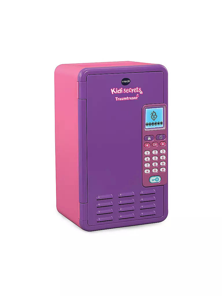 Hey, stell dir vor: Dein eigenes Einhorn bewacht deine liebsten Geheimnisse! Mit dem Vtech Unicorn Academy Tresor kannst du dir einen persönlichen Zahlencode aussuchen - nur wer den Code kennt, kommt an deine Schätze ran. Das ist doch mal was, oder?\n\nDer magische Tresor hat total viele coole Funktionen: 7 verschiedene Spielmodi wie 'Gedanken des Tages', 'Kristallkugel', 'Glückszahl' und 'Schatzsuche' sorgen für stundenlangen Spaß. Drinnen findest du drei praktische Fächer, eins davon sogar herausnehmbar - perfekt für alles, was dir wichtig ist.\n\nNoch cooler: Mit den beiliegenden Aufklebern kannst du den Tresor ganz nach deinem Geschmack gestalten. Und wenn du Musik hörst, schließ einfach deinen Musikplayer (separat erhältlich) mit dem beiliegenden Audiokabel an.\n\nPraktisches Extra: Das LCD-Display ist beleuchtet und zeigt dir die Uhrzeit an. Du kannst auch einen Wecker oder Timer einstellen. Mit 10 vorinstallierten Liedern und Melodien wird's nie langweilig. Und deine Eltern freuen sich: Abschaltautomatik, kindersicheres Batteriefach und Lautstärkeregler sind natürlich auch dabei.\n\nMaße: 30 x 25 x 15 cm • Altersempfehlung: 4-8 Jahre • Benötigte Batterien: 3x AA (nicht im Lieferumfang) • Material: Kunststoff • Farbe: Rosa/Lila mit Einhorn-Design