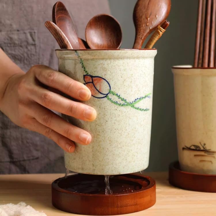 Acaino Keramik-Ulensilienhalter Mit Tropftablett - Ordnung Für Kochlöffel & Co.