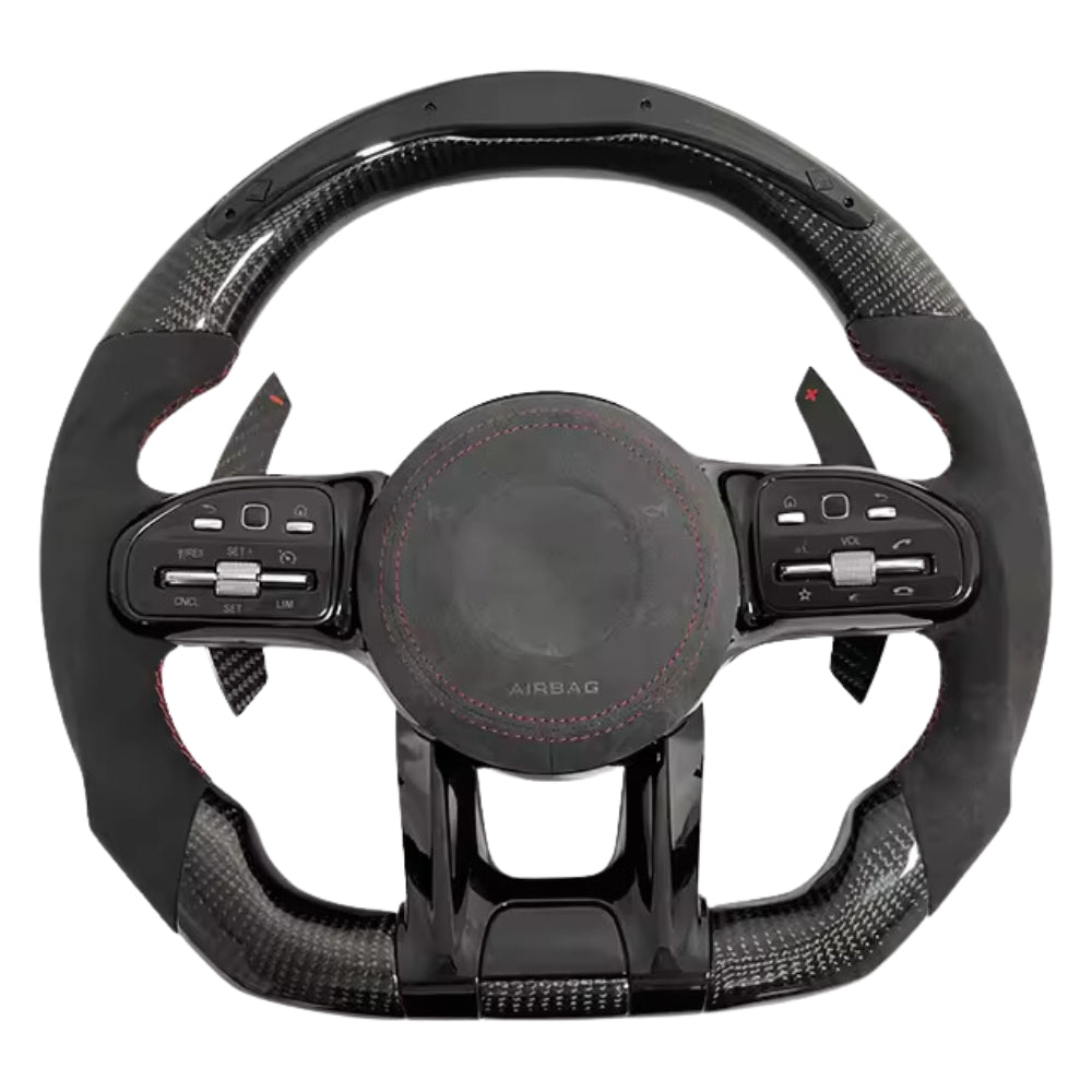 Boah, dieses Carbonfaser-Lenkrad von Acclcors ist ja mal der absolute Hingucker für deinen Nissan 350Z (2003-2008)! Aus echtem 3K Carbon gefertigt - nicht nur bedruckt - mit super 3D-Optik und klaren Faserlinien. Die D-Form gibt dir mehr Beinfreiheit beim Ein- und Aussteigen. Das LED-Display zeigt dir Geschwindigkeit, Drehzahl und andere wichtige Daten direkt vor Augen - mega praktisch! Der perforierte Leder-Griff liegt super in der Hand, schweißabsorbierend und rutschfest. Für Automatik-Modelle mit Paddellöchern. Der Einbau ist simpler als du denkst - einfach Originalteile tauschen. Mach dein Interieur zum echten Sportcockpit! Wenn du deinem 350Z was ganz Besonderes gönnen willst - hier ist es!