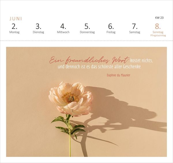 Starte jeden Tag mit einem Lächeln! Dieser Motivationskalender für 2025 bringt dir täglich eine neue, positive Affirmation. Mit 365 inspirierenden Sprüchen begleitest du das ganze Jahr mit guter Energie. Der Kalender hat eine schöne Größe von 14x14x9,5cm - perfekt für Nachttisch, Schminktisch oder Büro. Aus hochwertigem Papier gefertigt, das lange hält und toll aussieht. Jeder Tag eine neue Motivation - das stärkt das Selbstbewusstsein und die positive Einstellung! Super Geschenkidee für Freundinnen, Ehefrauen oder einfach für dich selbst. Zu Geburtstagen, Feiertagen oder einfach so - diese tägliche Portion Inspiration macht einfach glücklich! Einfach aufstellen und Tag für Tag eine neue, aufbauende Botschaft entdecken. Mach 2025 zu deinem Jahr - mit diesem wunderbaren Begleiter!