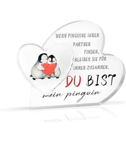 COYUN Pinguin Acryl Plakette - Herzförmiges Liebesgeschenk Für Paare