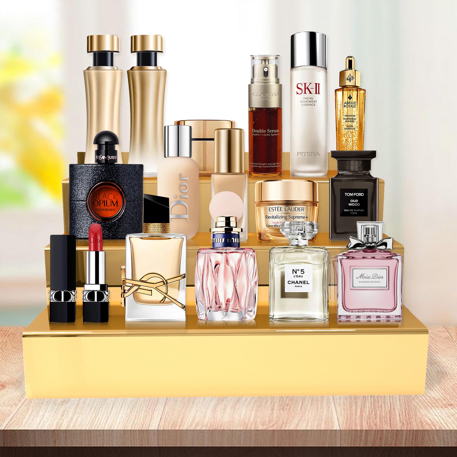 Aus stabilem Acryl gefertigt, ist jedes Regal 39,9 cm breit und extra verdickt - da machst du nichts kaputt! Die goldene Spiegelfläche gibt dem ganzen noch einen richtig edlen Touch, fast wie im Luxus-Salon.