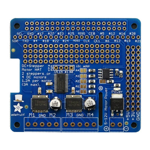 Robotik-Fans aufgepasst! Dieses Adafruit Motor Bonnet macht deinen Raspberry Pi zum Motoren-Profi. Das Board kann bis zu 4 DC-Motoren ODER 2 Schrittmotoren gleichzeitig steuern - perfekt für dein nächstes Robotik-Projekt! Komplett montiert und getestet geliefert, kein Löten erforderlich. Einfach auf deinen Raspberry Pi stecken und loslegen. Das Bonnet hat einen eigenen PWM-Treiberchip, da der Raspberry Pi selbst nicht viele PWM-Ausgänge hat. Gesteuert wird alles über die I2C-Schnittstelle - braucht nur zwei Pins (SDA und SCL) für mehrere Motoren. Du kannst sogar bis zu 32 HATs stapeln und so bis zu 64 Schrittmotoren oder 128 DC-Motoren ansteuern! Technische Highlights: 4 H-Brücken mit je 1,2A, Spannungsbereich 4,5-13,5V, individuelle 8-Bit Geschwindigkeitseinstellung für DC-Motoren (ca. 0,5% Auflösung). Funktioniert am besten mit Raspberry Pi Modell Zero, A+, B+, Pi 2 oder Pi 3. Einfach die Python-Bibliothek installieren und mit den Beispielprogrammen starten. Deine Roboter-Träume werden damit wahr - ob fahrender Roboter, CNC-Maschine oder automatisches System!