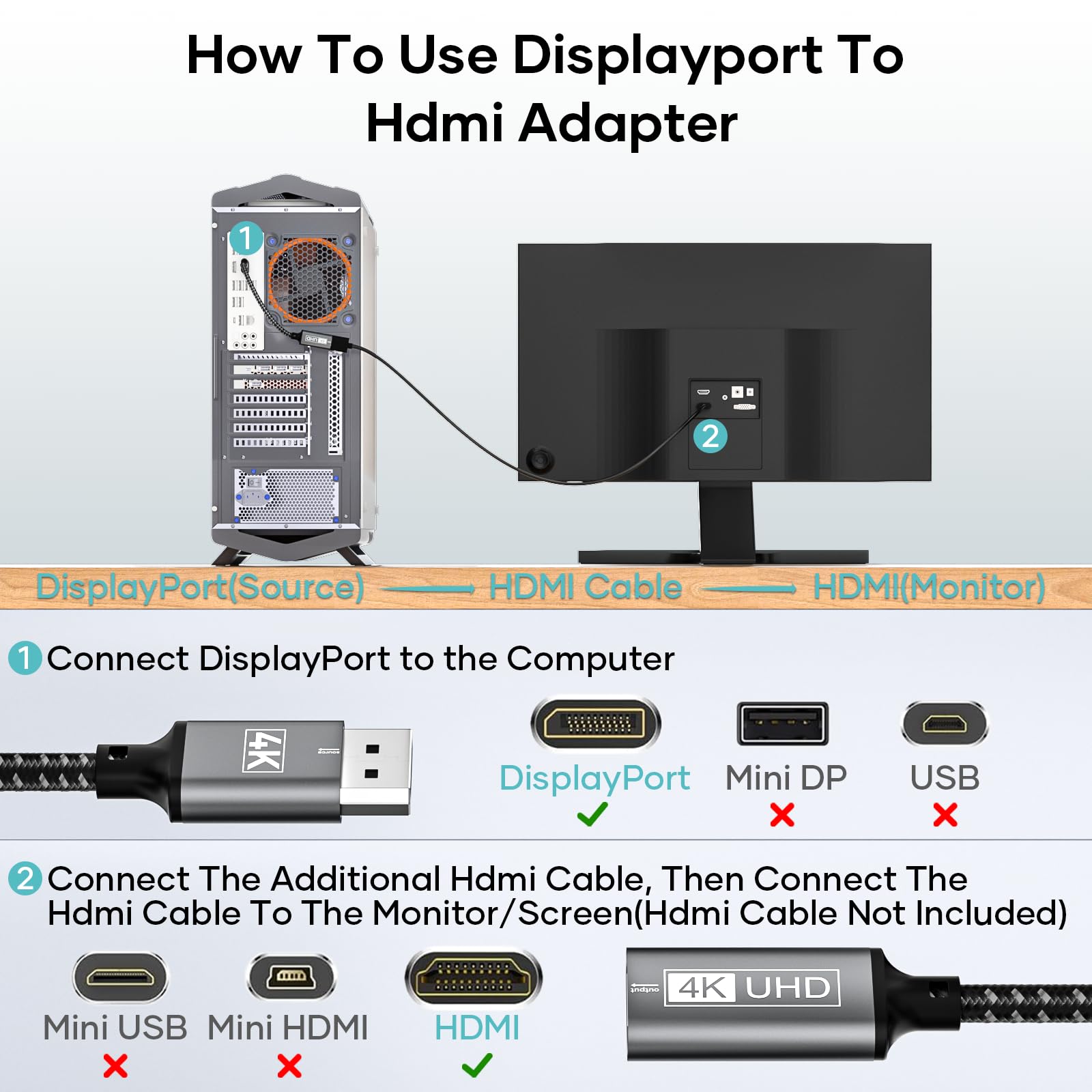 DisplayPort Zu HDMI Adapter - 4K Konverter Mit Nylongeflecht Kabel