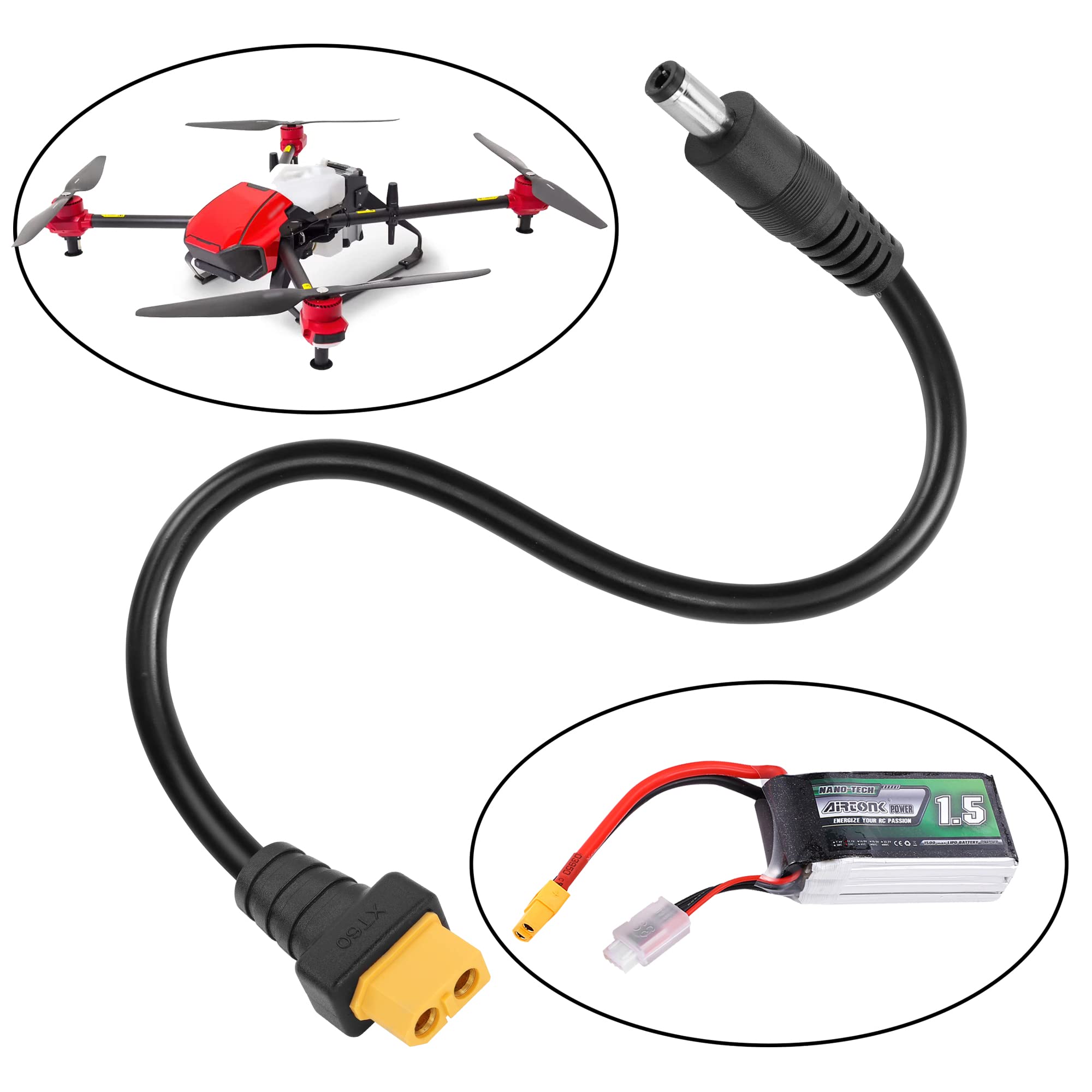 XT60 Auf DC5525 Adapterkabel - 30cm, 14AWG | Für TS100 Lötkolben & Drohnen