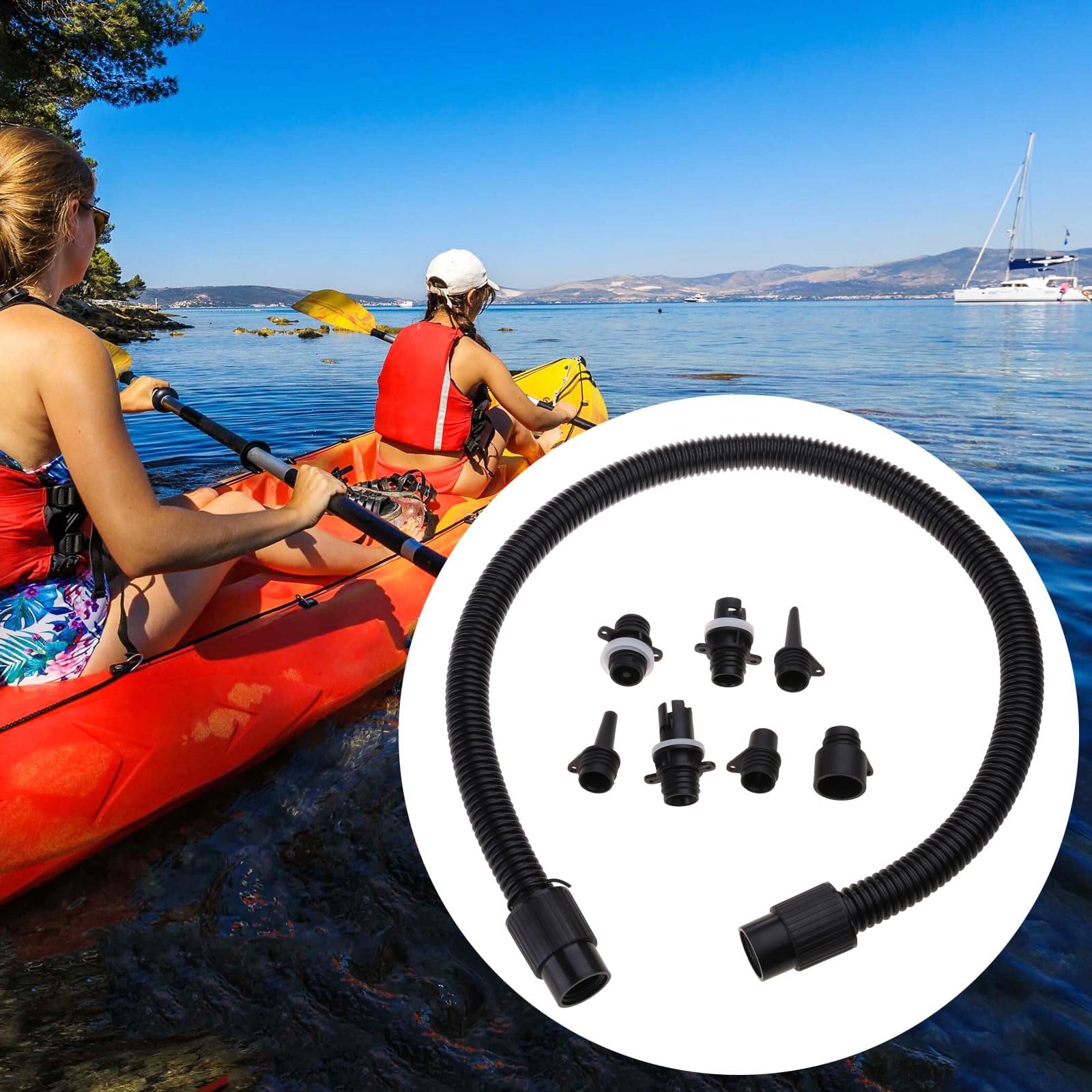 Endlich kein Ärger mehr mit verschiedenen Ventilen! Dieser universelle Aufblas-Schlauch kommt mit 6 verschiedenen Adaptern - da passt garantiert einer zu deinem Gerät. Ob Stand-up-Paddle, Schlauchboot, Luftmatratze, Poolspielzeug oder Camping-Zelt - damit pumpst du alles mühelos auf. Aus robustem PVC-Material hält der Schlauch ewig und die Adapter sitzen bombenfest. Super leicht (nur 220g) und platzsparend - ideal für unterwegs. Kompatibel mit den meisten handelsüblichen Luftpumpen. Einfach den passenden Adapter aufstecken und lospumpen! Kein Herumfummeln mehr an kleinen Ventilen, kein Luftverlust während des Aufpumpens. Das praktischste Zubehör, das du für deine Outdoor-Aktivitäten haben kannst - versprochen!