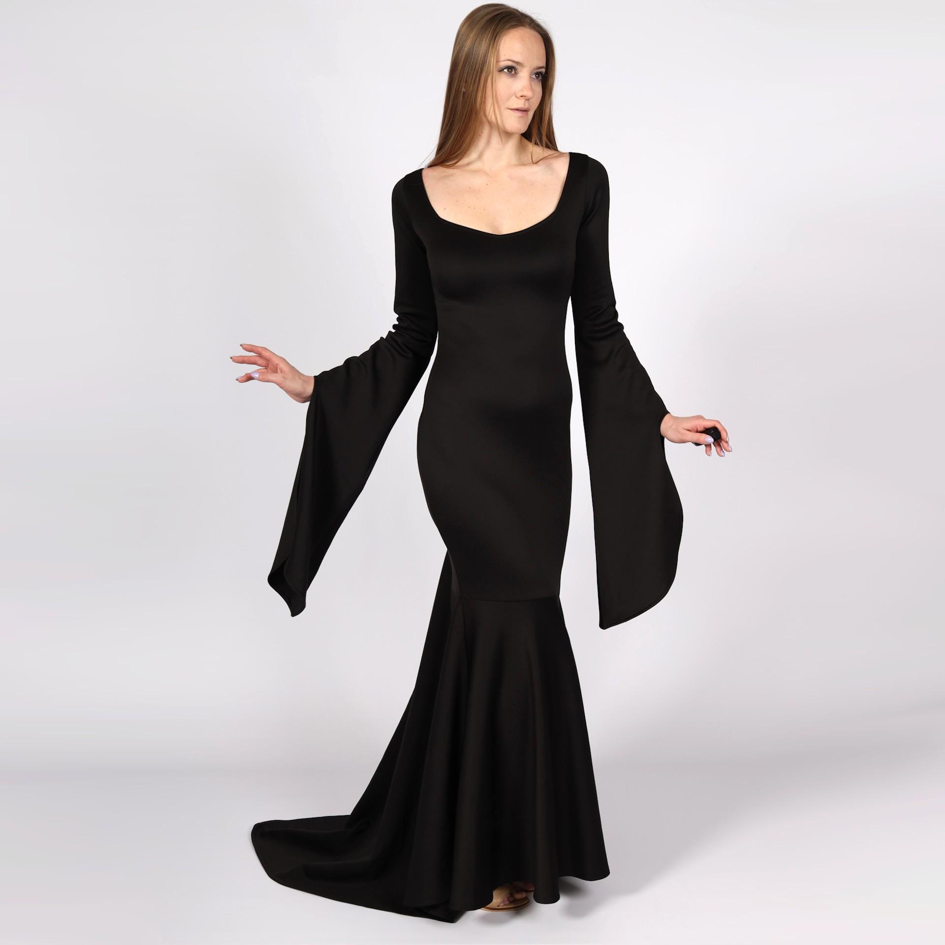 Morticia Addams Kleid Schwarz - Gothic Kostüm Mit Fledermausärmeln