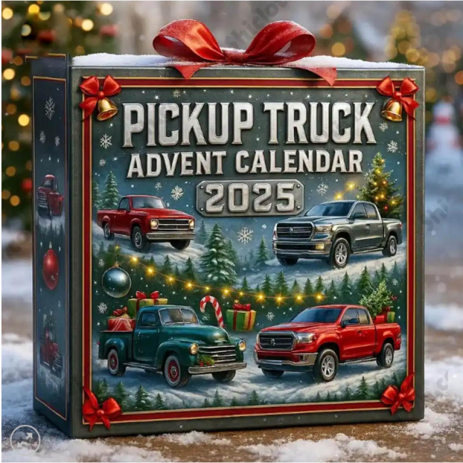 Adventskalender 2025 Mit 24 2D Acryl Ornamenten - Pickup Truck Design Für Weihnachtsbaum & Fenster