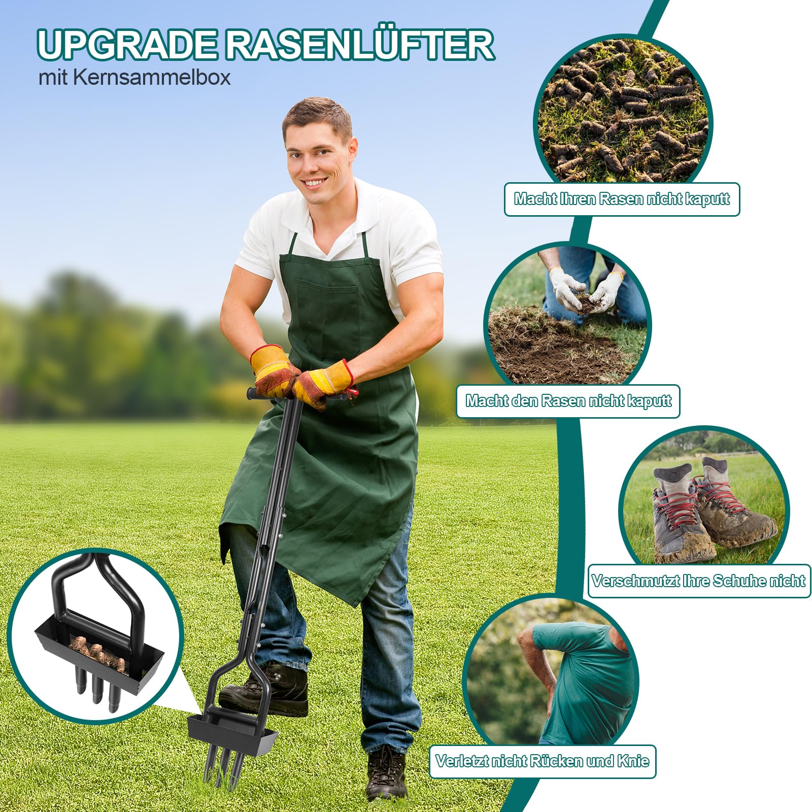 Träumst du von einem saftig grünen, dichten Rasen? Dieser manuelle Rasenlüfter ist dein bester Freund! Einfach in den Boden stechen und schon entstehen Löcher, die Luft, Wasser und Nährstoffe zu den Wurzeln lassen. Aus robustem Stahl gebaut - hält ewig! Mit 110 cm Gesamthöhe und rutschfestem Griff arbeitest du absolut rückenschonend. Die 7,5 cm langen Spieße dringen mühelos in den Boden ein. Und das Beste: Kein Strom, kein Benzin, kein Lärm - total umweltfreundlich! Nur 2,26 kg schwer und platzsparend zu verstauen. Ob Hausgarten, Kleingarten oder Grünfläche - damit wird dein Rasen zum echten Hingucker. Einfach mal ausprobieren - dein Rasen wird's dir danken!