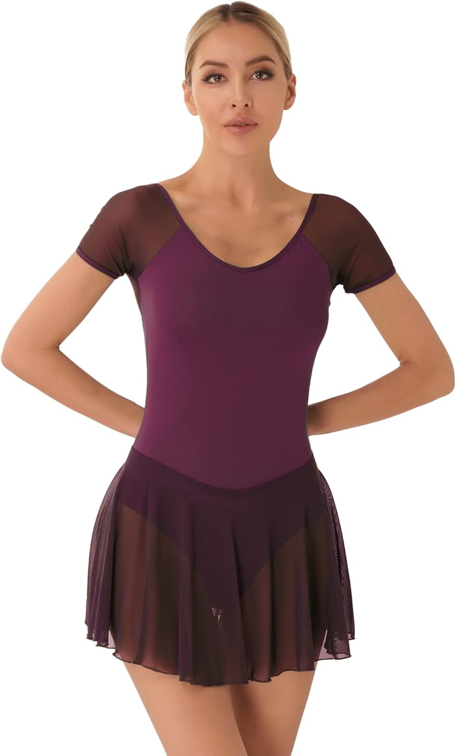 Agoky Damen Ballettkleid Mit Mesh-Rock - Ärmellos Für Tanz & Gymnastik