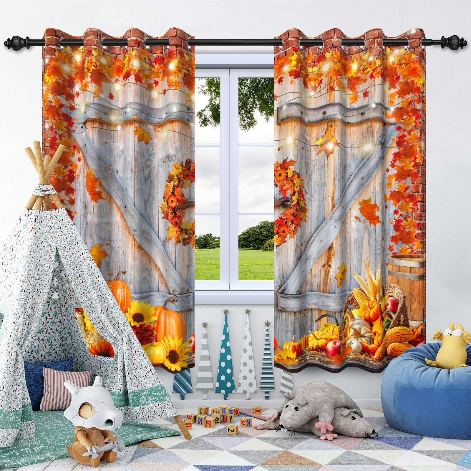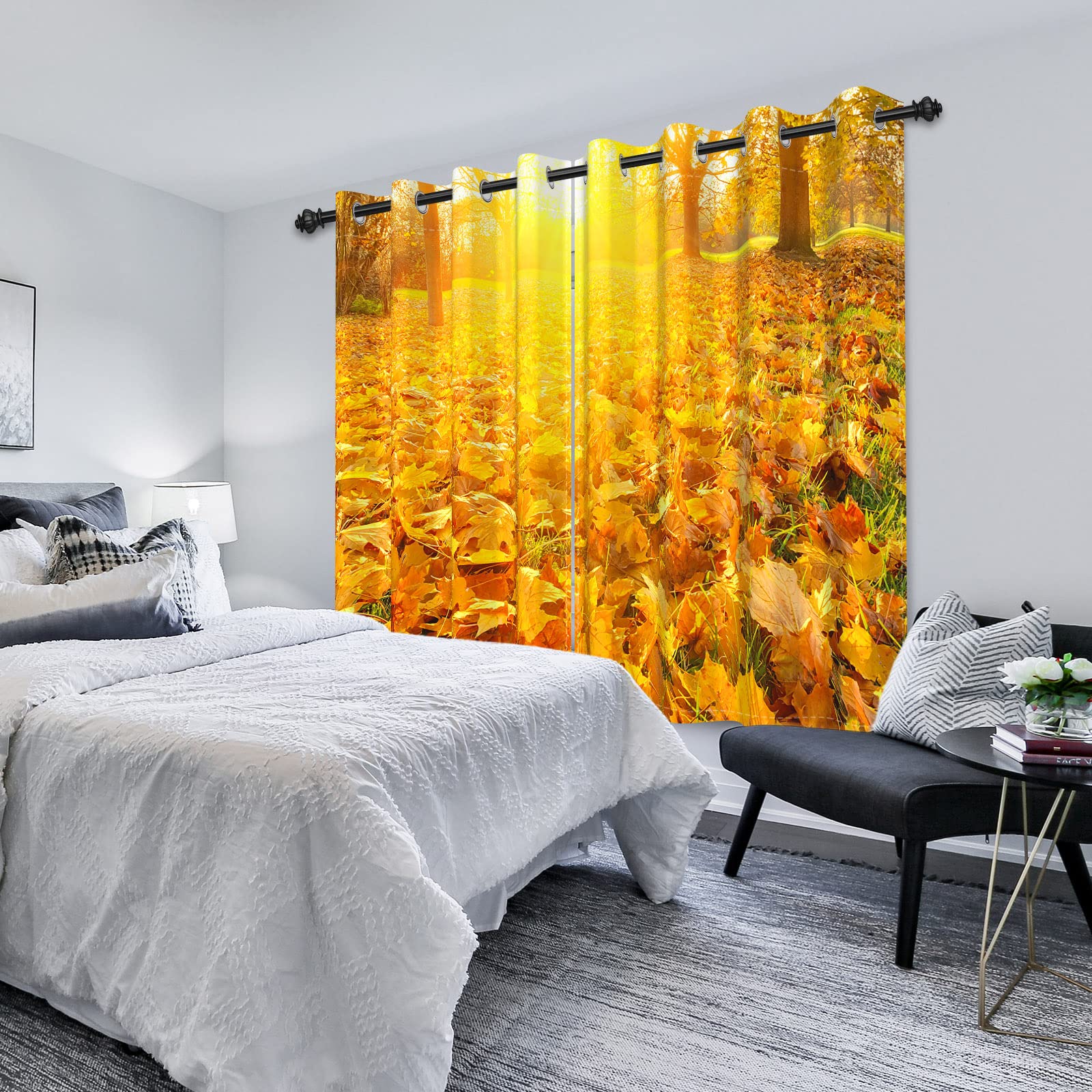 SDOTPMT Fenstervorhang Goldener Ahorn 117x138cm - 2-teilig Mit Verdunkelung