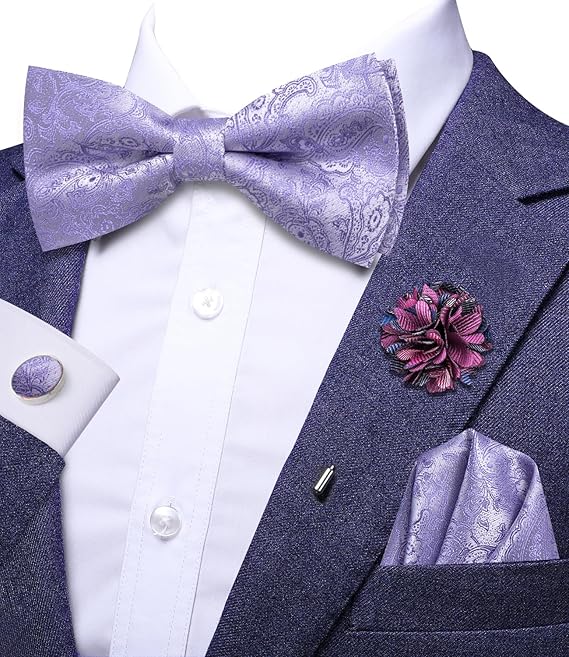 Ailisus Herren Fliegen Set - Seiden Fliege Mit Einstecktuch & Manschettenknöpfen