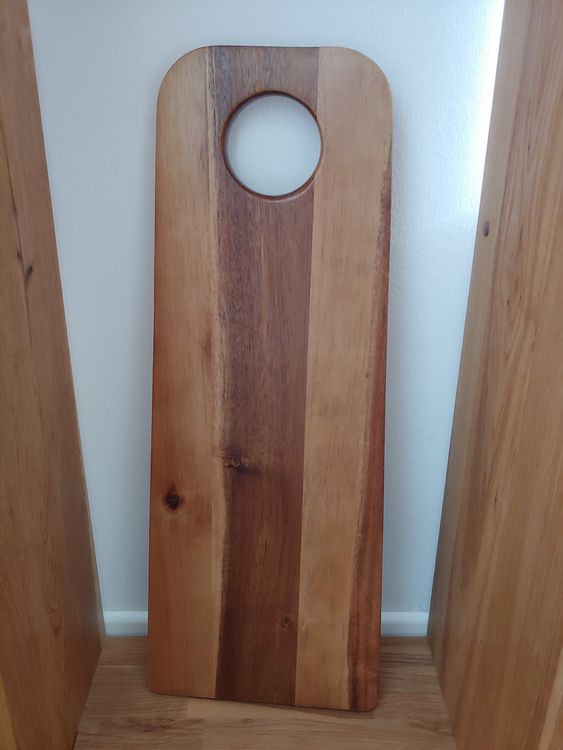 Dieses wunderschöne Servierbrett aus 100% natürlichem Akazienholz von KitchenCraft ist ein echter Eyecatcher! Mit 41x30cm bietet es genug Platz für Käse, Antipasti oder Canapés. Die einzigartige Maserung macht jedes Stück zum Unikat. Robust und von Natur aus resistent gegen Messereinschnitte und Flecken. Mit praktischem Griff und Aufhänger aus Kunstleder. Perfekt für gesellige Abende, Partys oder einfach als Deko in der Küche. Nur Handwäsche - so bleibt das Brett lange schön. Seit 1850 steht KitchenCraft für Qualität - das merkst du!