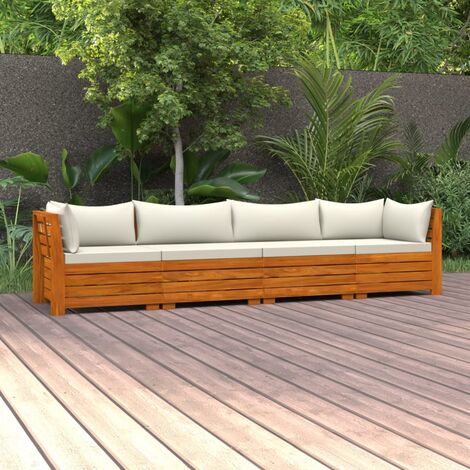 IKAYAA 4-Sitzer Gartensofa Akazienholz - Creme Kissen Loungeset