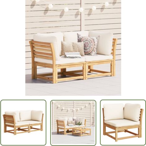 Wunderschönes 4-Sitzer Gartensofa aus massivem Akazienholz! Dieses komplette Loungeset besteht aus 2 Sofa-Mittelteilen (65x69x62,5cm) und 2 Sofa-Eckteilen (69x69x62,5cm). Mit cremefarbenen Kissen aus 100% Polyester die dick gepolstert und super bequem sind. Das Akazienholz ist mit Öl behandelt und damit absolut witterungsbeständig - perfekt für den Einsatz im Garten, auf der Terrasse oder dem Balkon. Modulare Bauweise - du kannst die Teile beliebig anordnen und anpassen. Inklusive Couchtisch mit stylischem Lattenrost-Design. Einfacher Zusammenbau mit beiliegender Anleitung. Um die Lebensdauer zu verlängern empfehlen wir bei starkem Regen oder intensiver Sonne eine Abdeckung zu verwenden. Reinigung mit milder Seifenlösung. Wird zum absoluten Mittelpunkt in deinem Outdoor-Bereich!