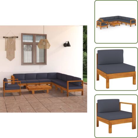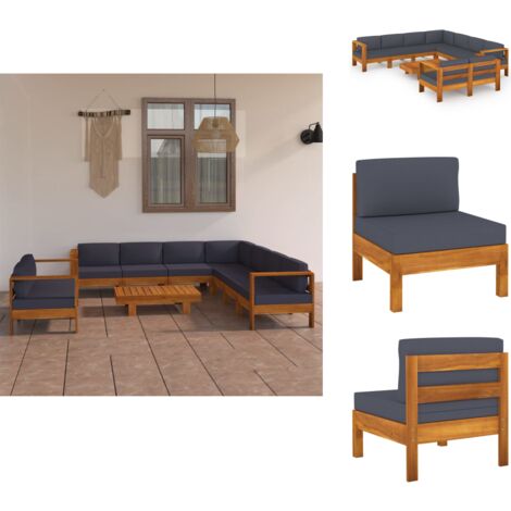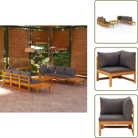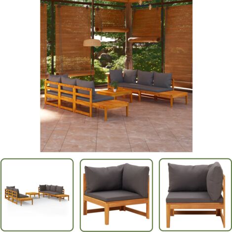 Perfekte Entspannung im Garten! Dieses 5-teilige Gartenmöbel-Set aus massivem Akazienholz ist einfach traumhaft! Enthält 2 Mittelsofas, 1 Eckteil, 1 Mittelteil und einen praktischen Tisch. Mit dunkelgrauen Polstern aus 100% Polyester - super bequem und wetterfest! Die 10cm dicken Sitz- und Rückenkissen sorgen für maximalen Komfort. Akazienholz ist super robust und für draußen geeignet - hält Jahre! Tischplatte bietet Platz für Getränke und Snacks. Einfach aufbauen und schon kann die Gartenparty beginnen! Perfekt für Terrasse, Balkon oder Garten. Sieht edel aus und ist mega gemütlich! Für entspannte Stunden mit Familie und Freunden!