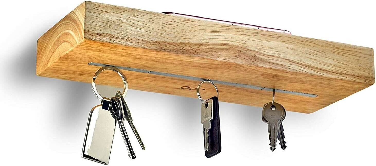 Schlüsselchaos ade! Dieses coole Schlüsselbrett mit echten Flugzeugschnallen bringt Ordnung in deinen Alltag. Aus massivem Akazienholz gefertigt, mit drei originalen Sicherheitsgurtschnallen im silbernen Design. Einfach den Schlüsselbund in die Schnalle einrasten - genau wie im Flugzeug! Die Gravur 'REMOVE BEFORE FLIGHT' unterstreicht den authentischen Look. Mitgelieferte Schrauben und Dübel machen die Wandmontage zum Kinderspiel. Jedes Brett ist ein Unikat, da es aus Naturholz handgefertigt wird - Maserung und Farbe können leicht variieren. Perfekt für den Flur, die Wohnung oder das Büro. Ein ideales Geschenk für Piloten, Reiselustige oder alle, die praktische Deko lieben. Maße: 23x15x3,5 cm - kompakt aber auffällig. Sag goodbye zum Schlüsselsuchen!