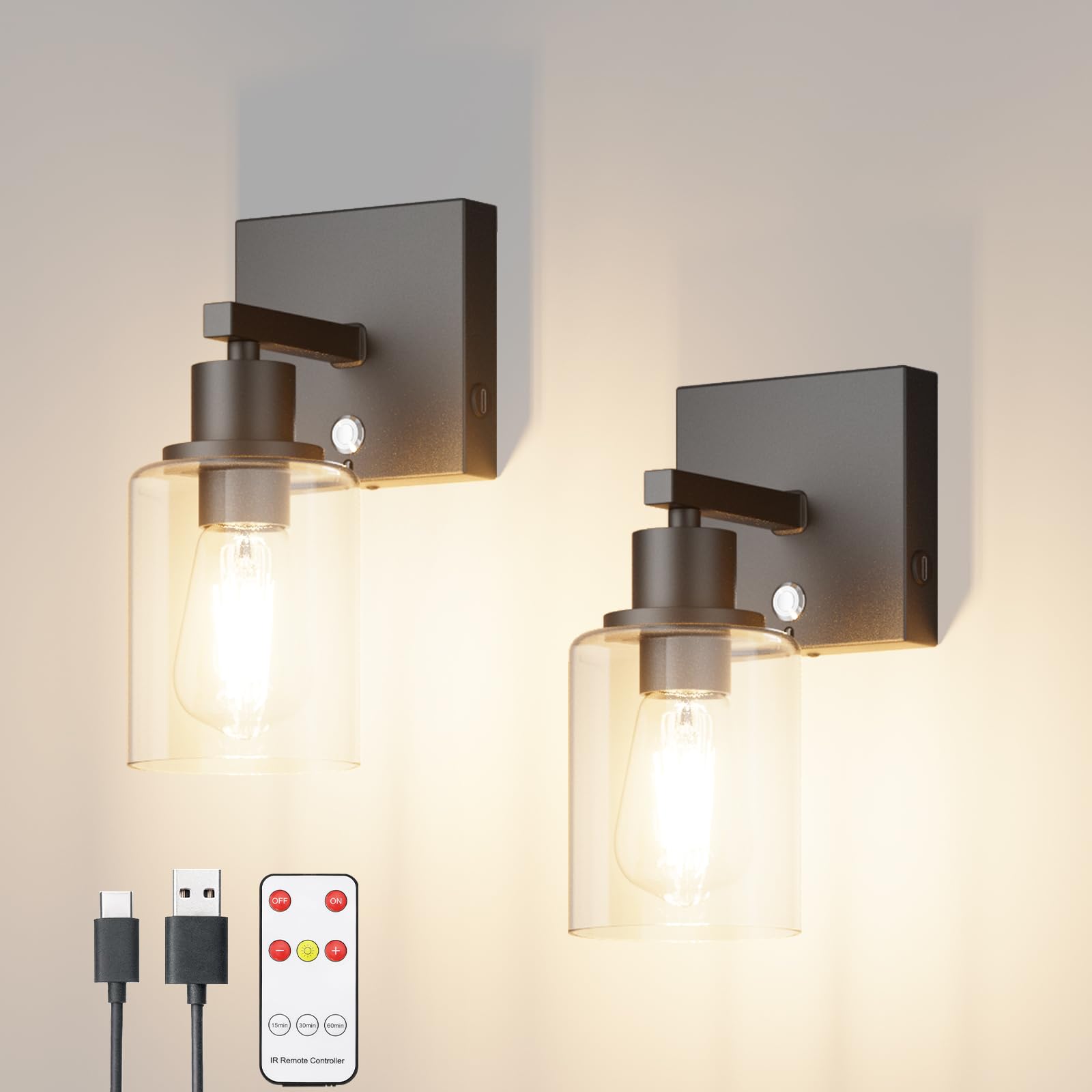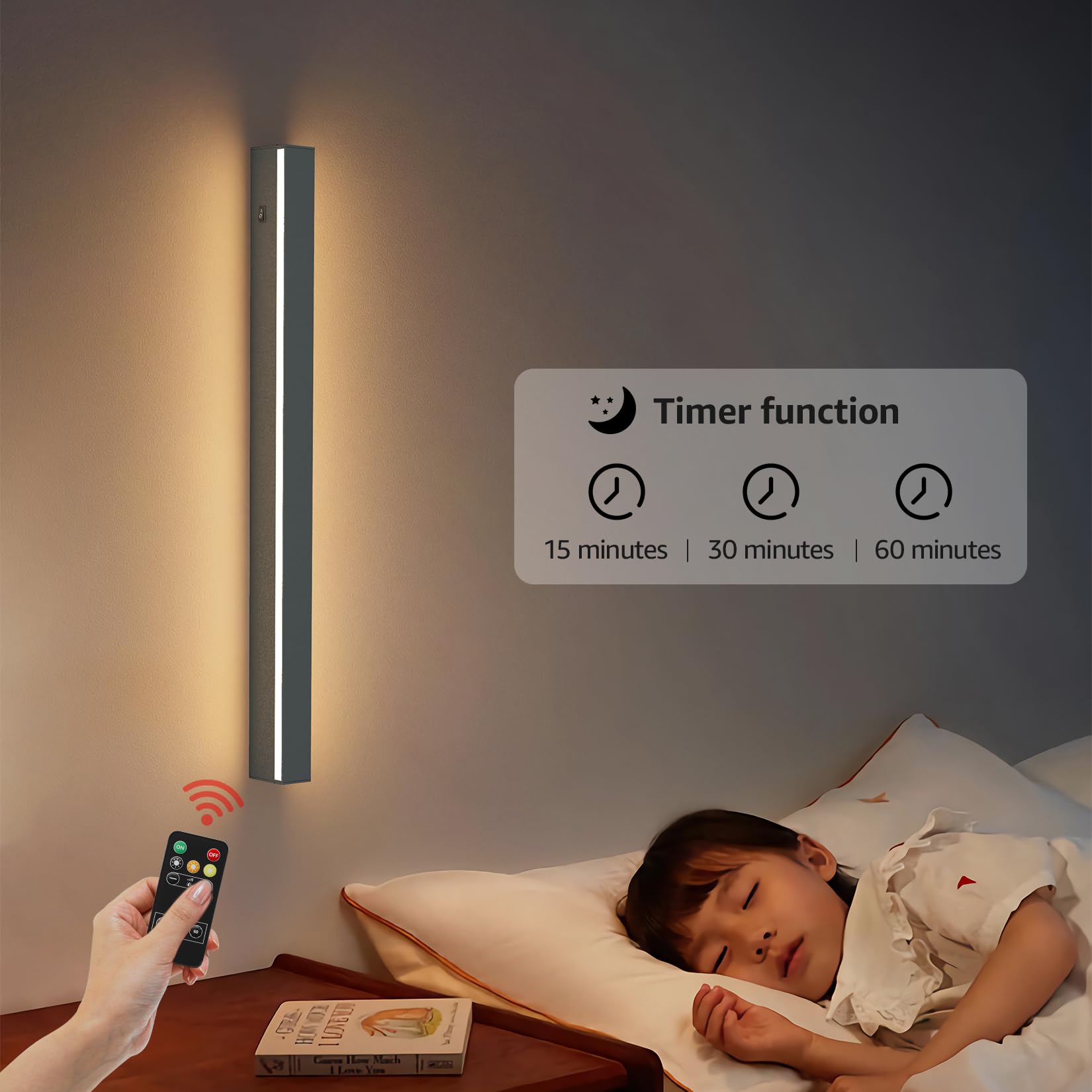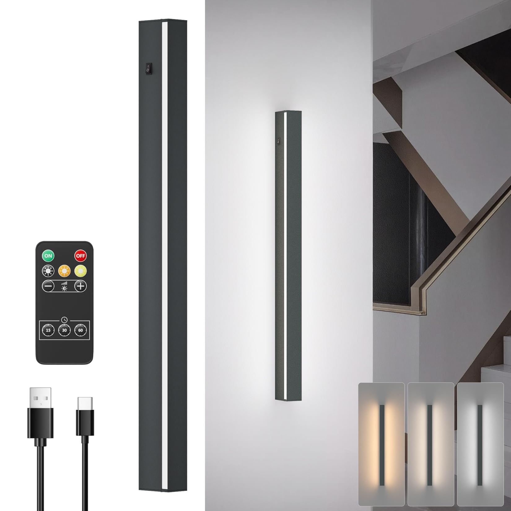 Klighten LED Wandleuchte Akku - 60cm Dimmbar Schwarz Mit Fernbedienung & Timer