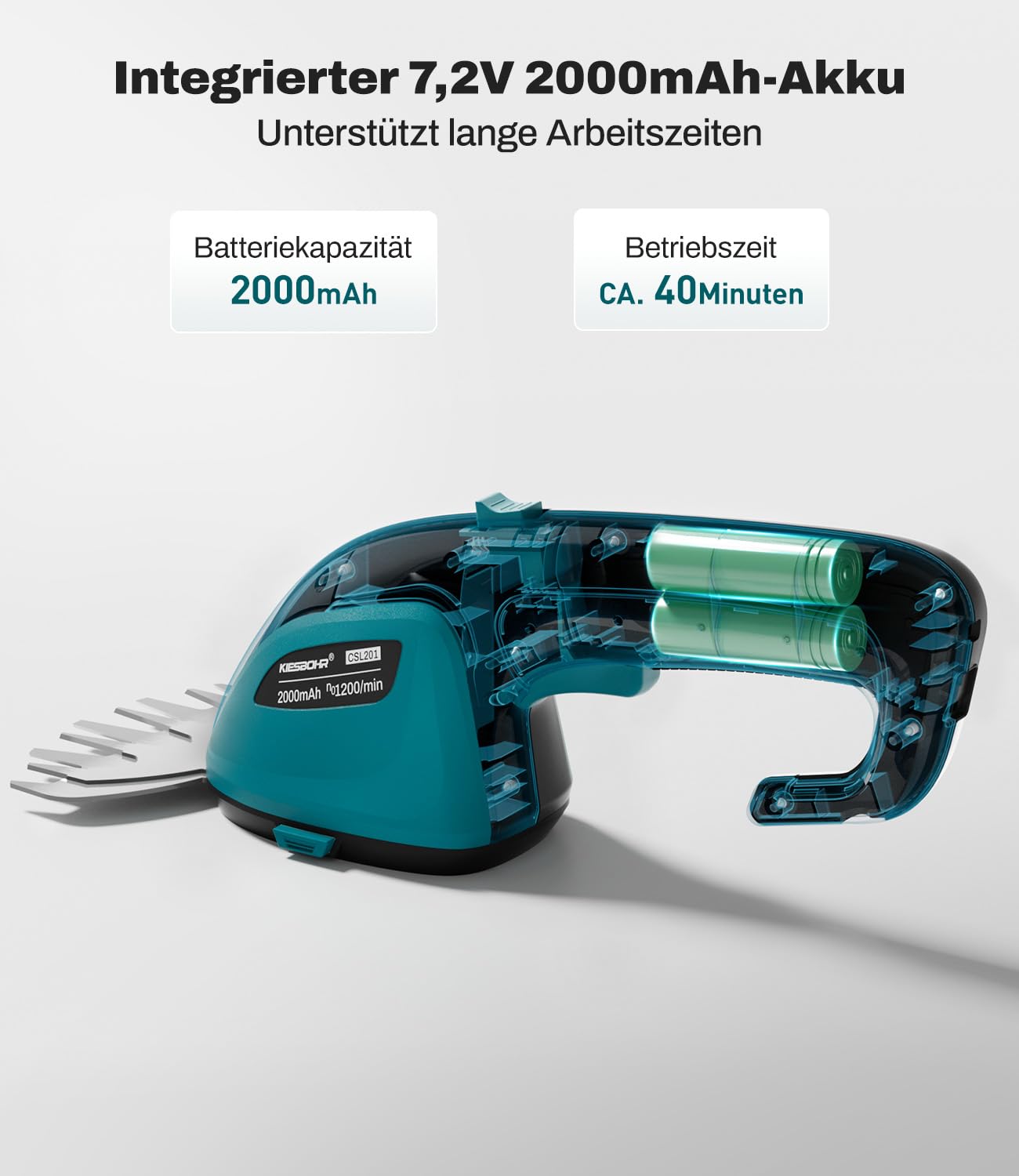 KIESBOHR 2-in-1 Akku Gartenschere 7.2V - Grasschere & Heckenschere Mit 2000mAh Akku