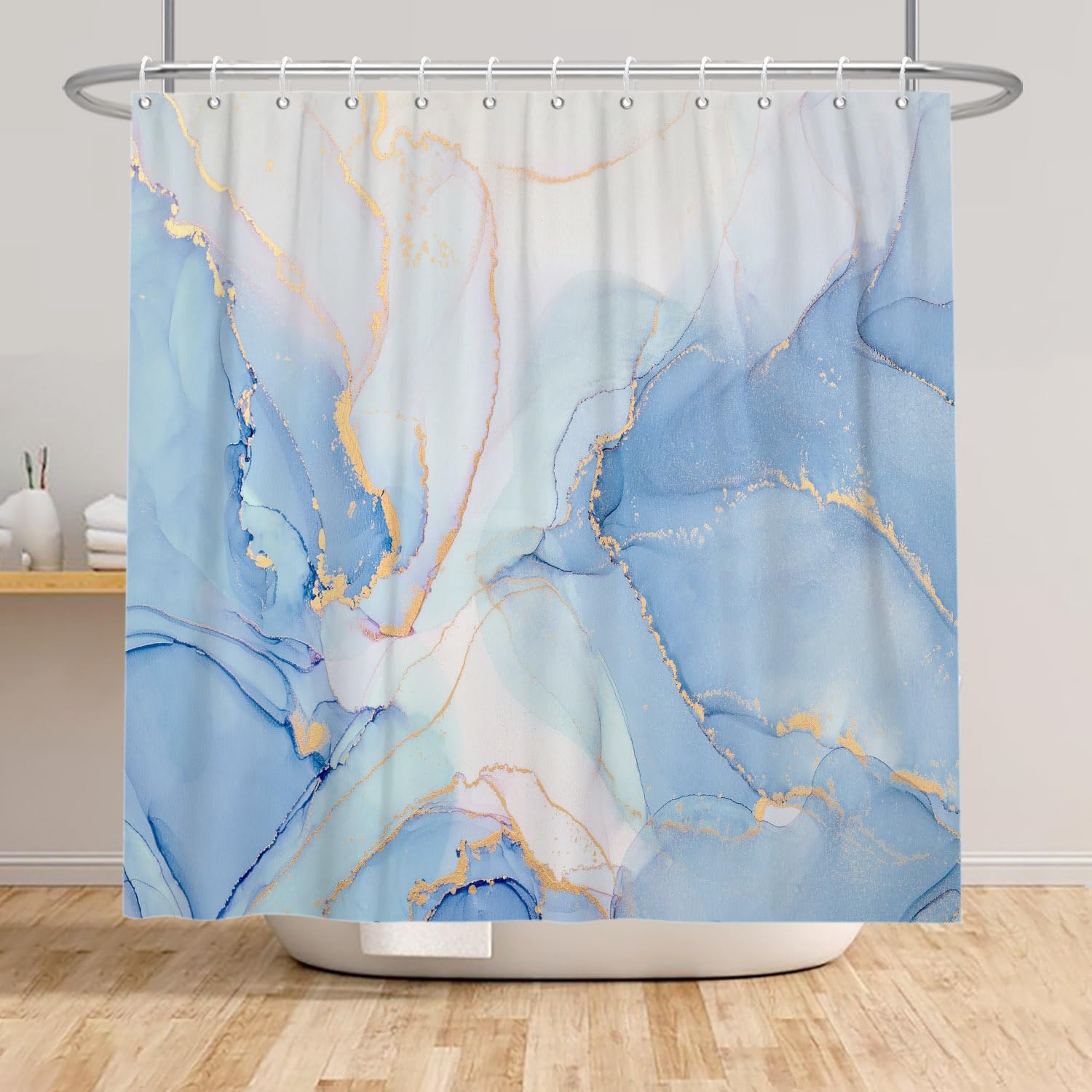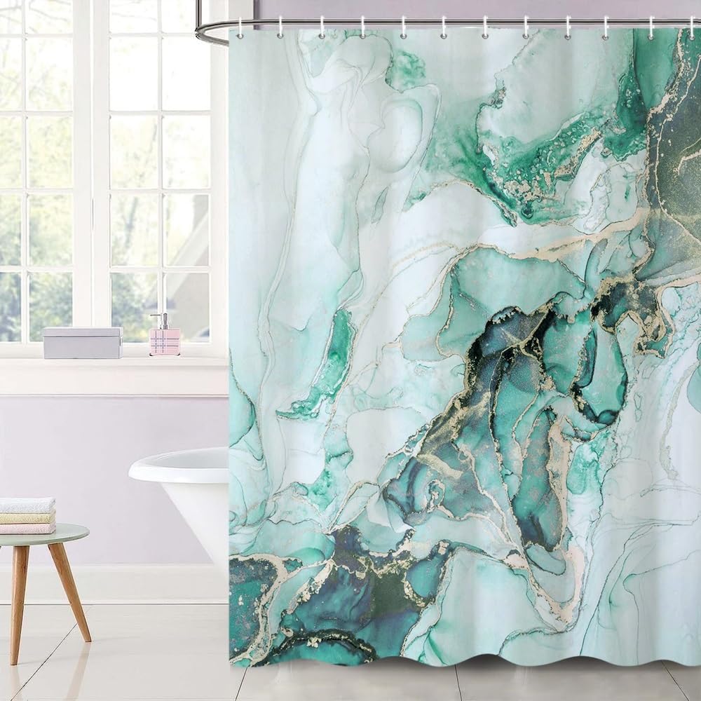 Alishomtll Marmor Duschvorhang 180x200cm | Wasserdicht & Schimmelresistent - Inkl. 12 Ringe