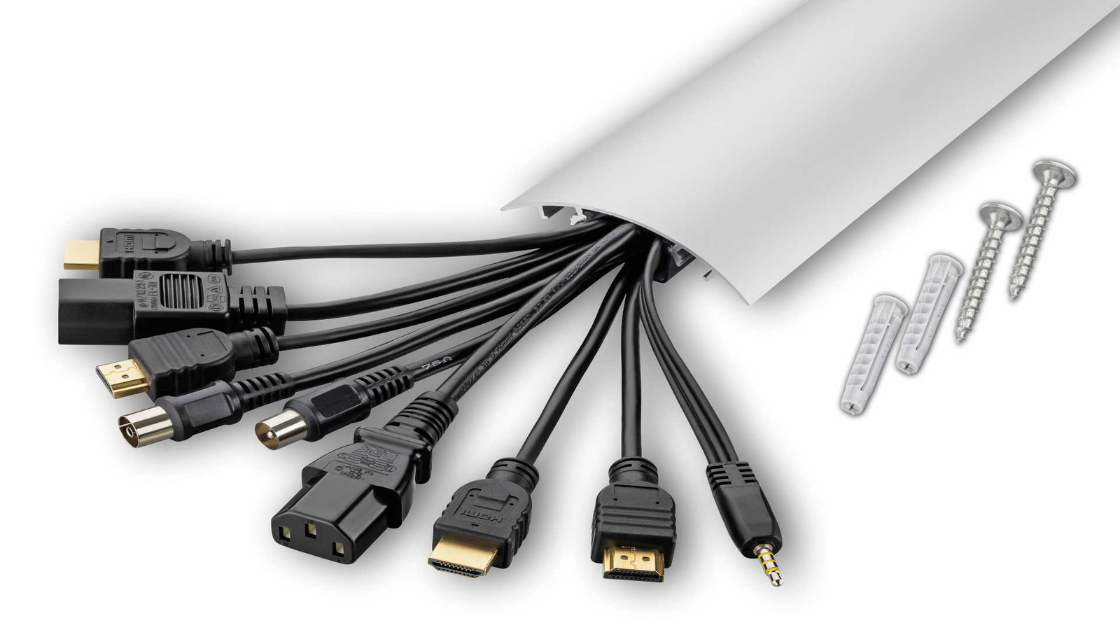 Schluss mit kabellosem Chaos! Dieser edle Aluminium-Kabelkanal in Anthrazit (RAL7016) bringt Ordnung in deine Kabel und sieht dabei noch richtig gut aus. Perfekt für TV-Anlagen, Home-Office oder wherever Kabel stören. Das geniale Easy-Clip System macht die Montage zum Kinderspiel - einfach den transparenten Träger an der Wand befestien, Kabel reinlegen und die Alu-Abdeckung clipsen. Platz für 6-10 Kabel, je nach Dicke. Mitgeliefert werden Dübel und Schrauben für sofortigen Einsatz. Aus massivem Aluminium für maximale Stabilität und mit seidenmatter Oberfläche für modernes Design.