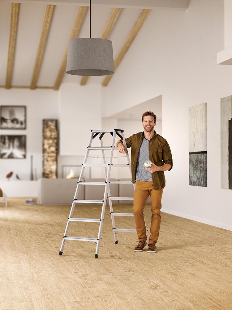 Sicherheit und Stabilität made in Germany! Die Hailo D60 Alu-Trittleiter ist der perfekte Helfer für Haushalt, Werkstatt und Beruf. Mit 2x7 Stufen und beidseitiger Besteigbarkeit hast du maximale Flexibilität.\\n\\nDie rutschsicheren, längsprofilierten Alu-Stufen und stabilen Steckfüße geben dir sicheren Halt - auch auf glatten Böden. Bis zu 150kg Belastung sind kein Problem! Die HighTech-vernietete Holm-Stufenverbindung garantiert absolute Standsicherheit.\\n\\nIn der Bockstellung hast du beide Hände frei und volle Bewegungsfreiheit in alle Richtungen. Zusammengeklappt ist die Leiter super kompakt und platzsparend verstaut.\\n\\nMaximale Arbeitshöhe: 318cm - perfekt für Deckenarbeiten, Lampen montieren oder Regale einrichten. Hailo Qualität seit 1947 - darauf kannst du dich verlassen!