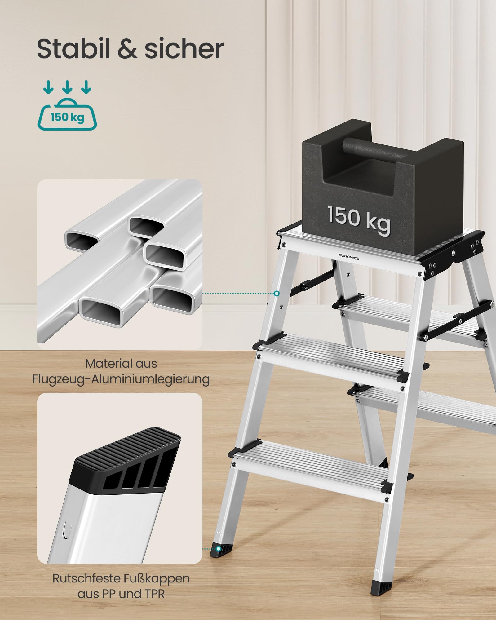 HOMCOM Alu-Trittleiter 3 Stufen - Klappbar Bis 150kg, Rutschfeste Stufen