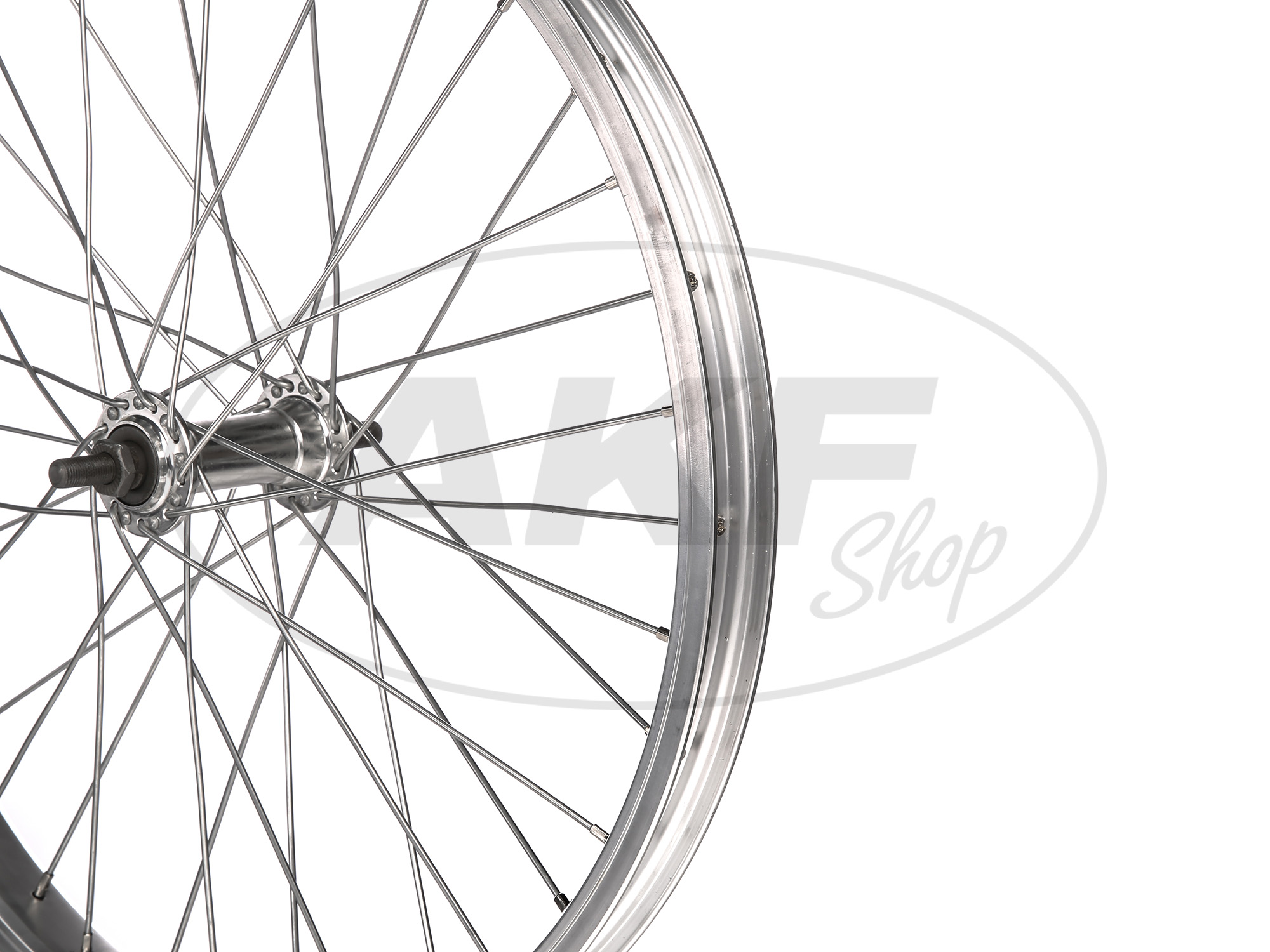 Klassisches Speichenrad in Top-Qualität! Diese 2.15x16 Zoll Felge in glänzend polierter Alu-Optik ist ein echter Blickfang für dein Motorrad. Komplett montiert und fachmännisch zentriert - jedes Rad wird einzeln auf Höhen- und Seitenschlag geprüft. Enthält 36 hochwertige, schwarze Speichen mit Nippeln aus schwarz verzinktem Stahl. Die Radnabe in schöner glänzender Optik ist bereits mit modernen, gekapselten Lagern, verstärkter Abstandshülse und Sicherungsring ausgestattet. Geprüfte Toleranzen: Höhenschlag unter 1.3mm, Seitenschlag unter 0.8mm. Besonders beliebt als Tuning-Felge für Simson S50, S51, KR51 Schwalbe und SR4. Ob für Restauration, Tuning oder Ersatz - dieses Speichenrad überzeugt durch Qualität und klassisches Design. Einfach einbauen und von der soliden Verarbeitung profitieren. Mach dein Motorrad mit diesem zeitlosen Rad zu etwas Besonderem!