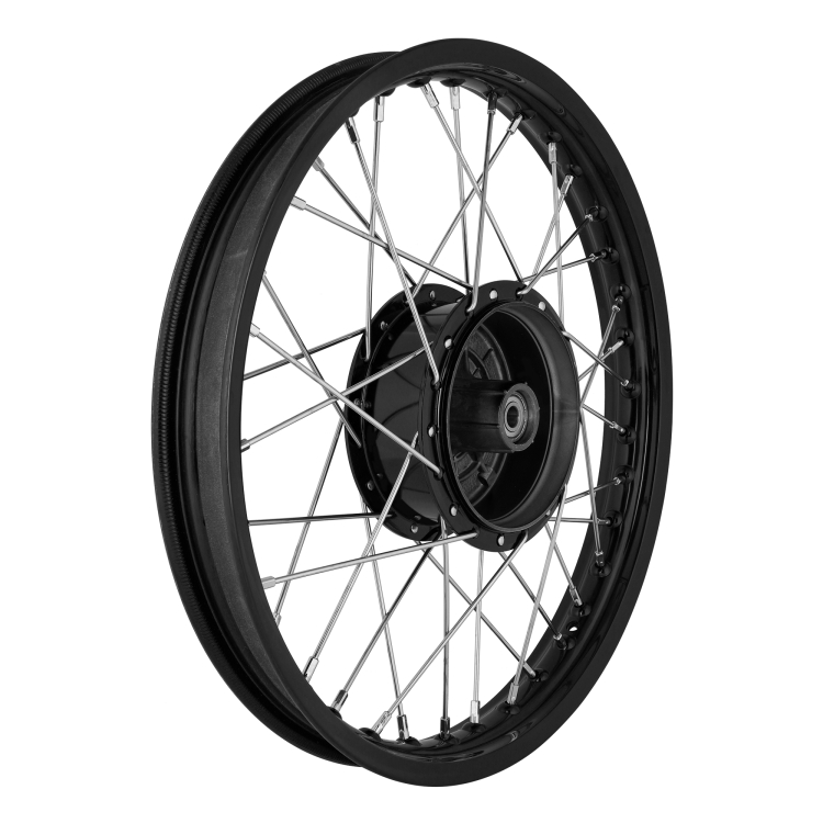 Speichenrad 2.15x16 Zoll Alufelge Poliert - 36 Schwarze Speichen