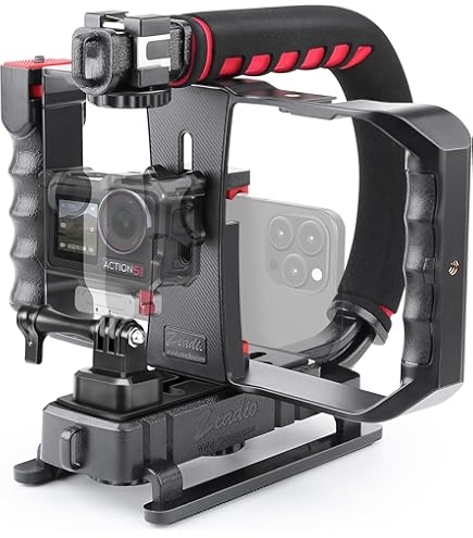 Beufee Handheld Stabilisator Griff Aluminium | Dual Griff Tray Unterwasser Kamera Rig