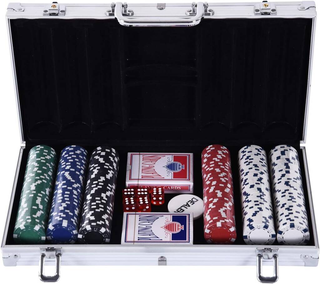 WeFun Poker Set 300 Chips - Aluminium Koffer Mit Karten Und Würfeln
