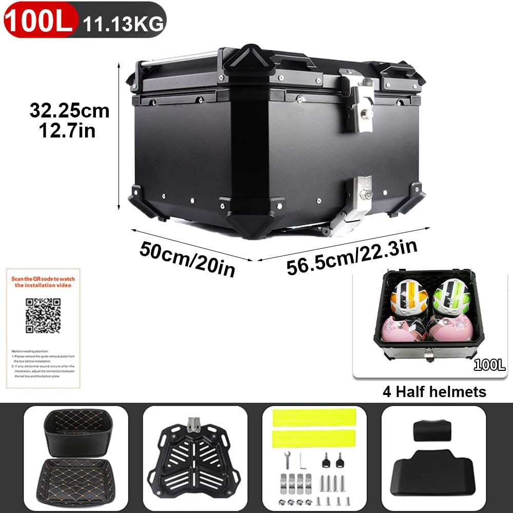 WNANCH Aluminium Motorradkoffer 36L - Wasserdichter Topcase Mit Diebstahlschutz