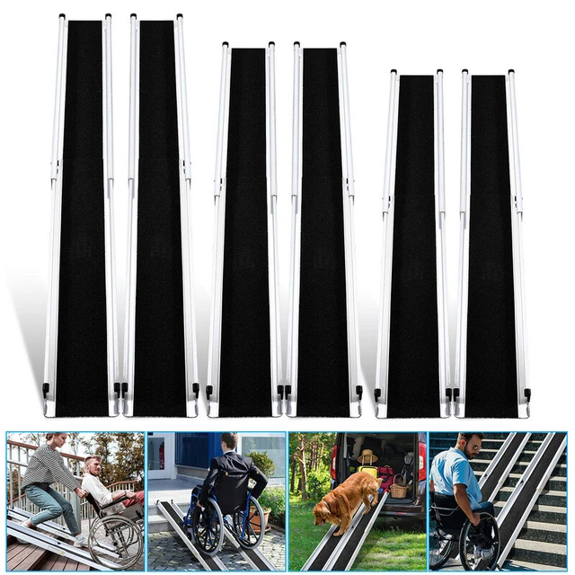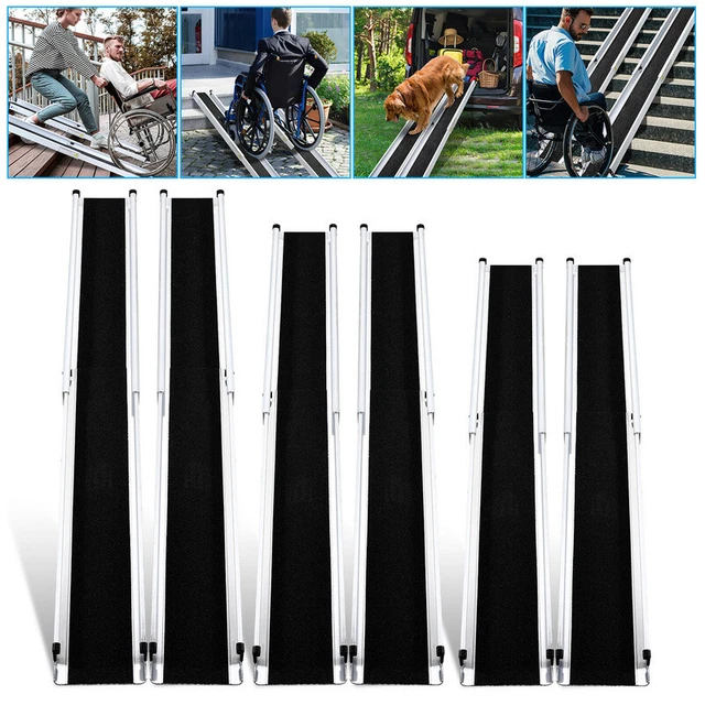 Praktische Rollstuhlrampe die überall mit hingeht! Diese klappbare Alurampe ist dein perfekter Begleiter für mehr Mobilität. Aus robustem Aluminium mit rutschfester Beschichtung - sicher auch bei Regen. Teleskop-System: Ausgeklappt 274cm lang, zusammengeschoben nur 152cm. Nur 14kg leicht und trotzdem belastbar bis 200kg! Perfekt für Rollstühle, aber auch für Rollatoren, Motorroller oder andere schwere Gegenstände. Einfache Handhabung - schnell auf- und zusammengeklappt. Inklusive praktischer Tragetasche für einfachen Transport. Macht Treppen und Stufen problemlos überwindbar. Ob zu Hause, im Urlaub oder unterwegs - diese Rampe gibt dir die Freiheit, die du brauchst. Mehr Unabhängigkeit und Sicherheit in einem cleveren Design!