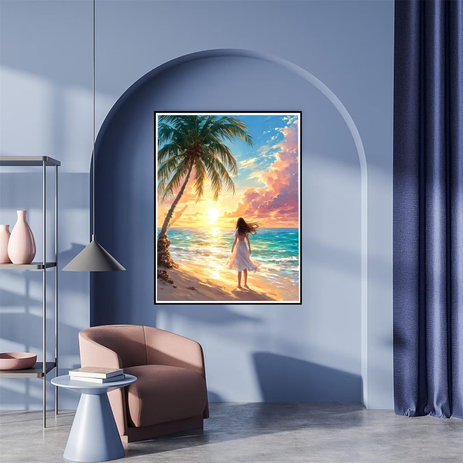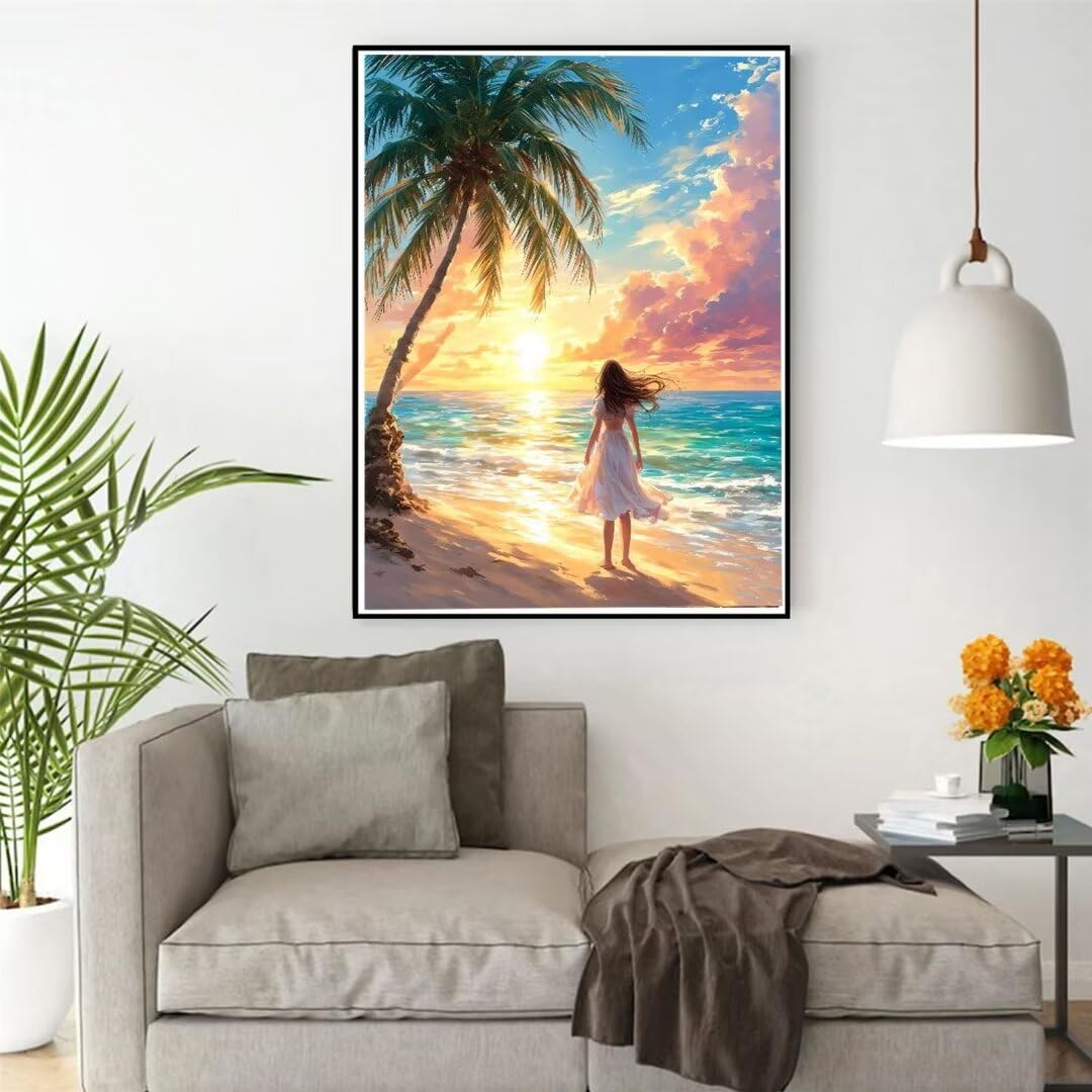 Diamant Painting Kokosnussbäume Am Meer 40x80cm - 5D DIY Diamond Art Set