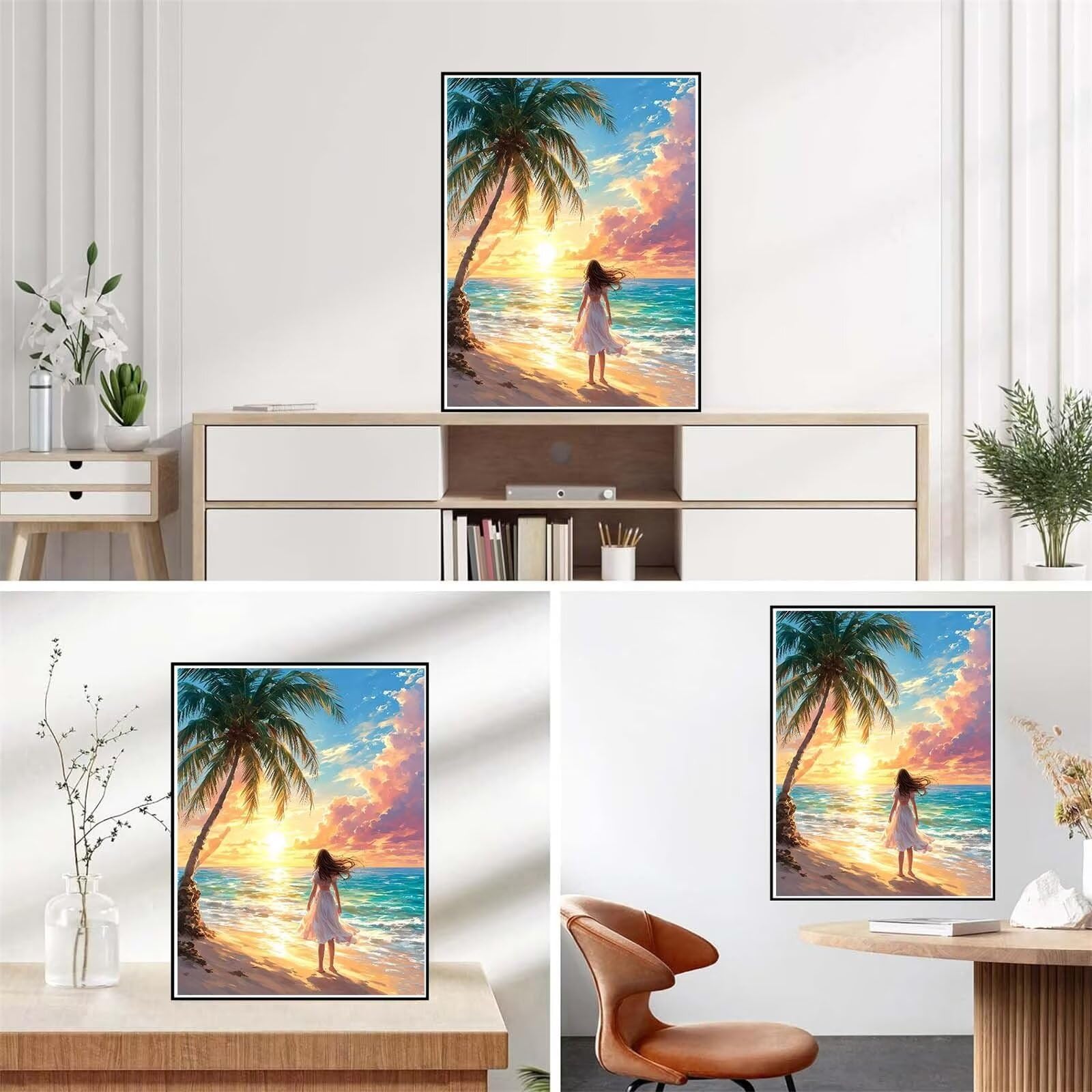 Wow, dieses Diamant Painting Set ist ja mal richtig schön! Das Motiv zeigt traumhafte Kokosnussbäume am Meer - einfach perfekt für ästhetische Raumdekoration. Mit 40x80cm Größe hast du richtig was zu tun! 5D-Diamanten sorgen für mega viel Glanz und Tiefe. Im Set ist alles dabei: HD-Leinwand mit Klebefläche, Strass-Perlen in allen Farben, Diamant-Stift, Wachs, Sortierschale und sogar 15-30% extra Diamanten falls mal was daneben geht. Einfach die Folie stückweise abziehen und die Diamant-Perlen nach der Symboltabelle aufkleben - so einfach kann Kunst sein! Perfekt für Erwachsene und größere Kinder (Achtung: Nicht für kleine Kinder, Verschluckungsgefahr!). Macht total Spaß und entspannt unheimlich. Wenn du fertig bist, hast du ein wunderschönes Bild für dein Zuhause - ob Wohnzimmer, Schlafzimmer oder Büro. Einfach aufhängen und staunen!