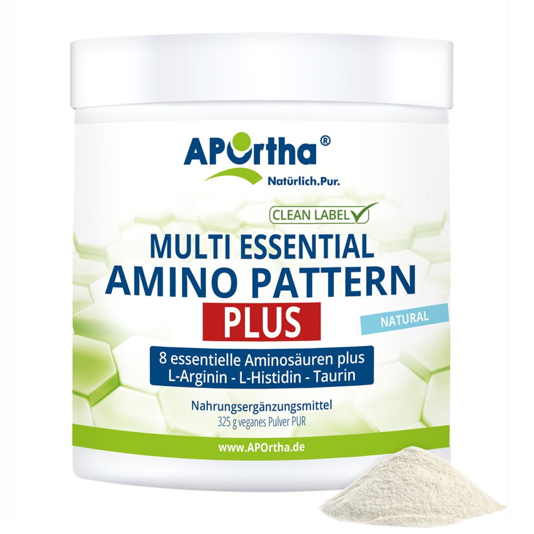 Kraft aus der Dose - dieses Aminosäuren-Pulver von APOrtha gibt dir Energie! Mit 8 essentiellen Aminosäuren in perfekt abgestimmtem Verhältnis nach Prof. Dr. Lucà-Moretti. 362g Pulver, komplett vegan und biofermentativ hergestellt. Enthält L-Leucin, Valin, Isoleucin und alle anderen wichtigen Aminos. Einfach 1 Portion in 200ml Wasser mischen und trinken. Frei von Gluten und Laktose, made in Germany. Perfekt für Sportler oder alle, die ihre Proteinversorgung optimieren wollen. 99% der Aminos stehen dem Körper sofort zur Verfügung - maximale Wirkung!
