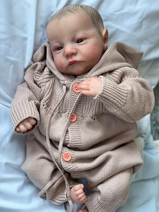 Diese Reborn-Puppe ist so realistisch, dass man fast denkt, es wäre ein echtes Baby! Mit 45 cm Größe und 1,2 kg Gewicht fühlt sie sich an wie ein Neugeborenes. Kopf, Arme und Beine sind aus weichem Silikon-Vinyl, die Haut sieht total natürlich aus. Sie hat echte Wimpern, handbemalte Augenbrauen und kann sitzen oder liegen. Die Gelenke sind beweglich, nur stehen kann sie nicht. Perfekt zum Kuscheln, als Geschenk oder für Sammler. Im Lieferumfang: Baby-Outfit, Magnetschnuller und Geburtsurkunde. Aber Achtung: Nicht für Kinder unter 3 Jahren wegen Kleinteilen!