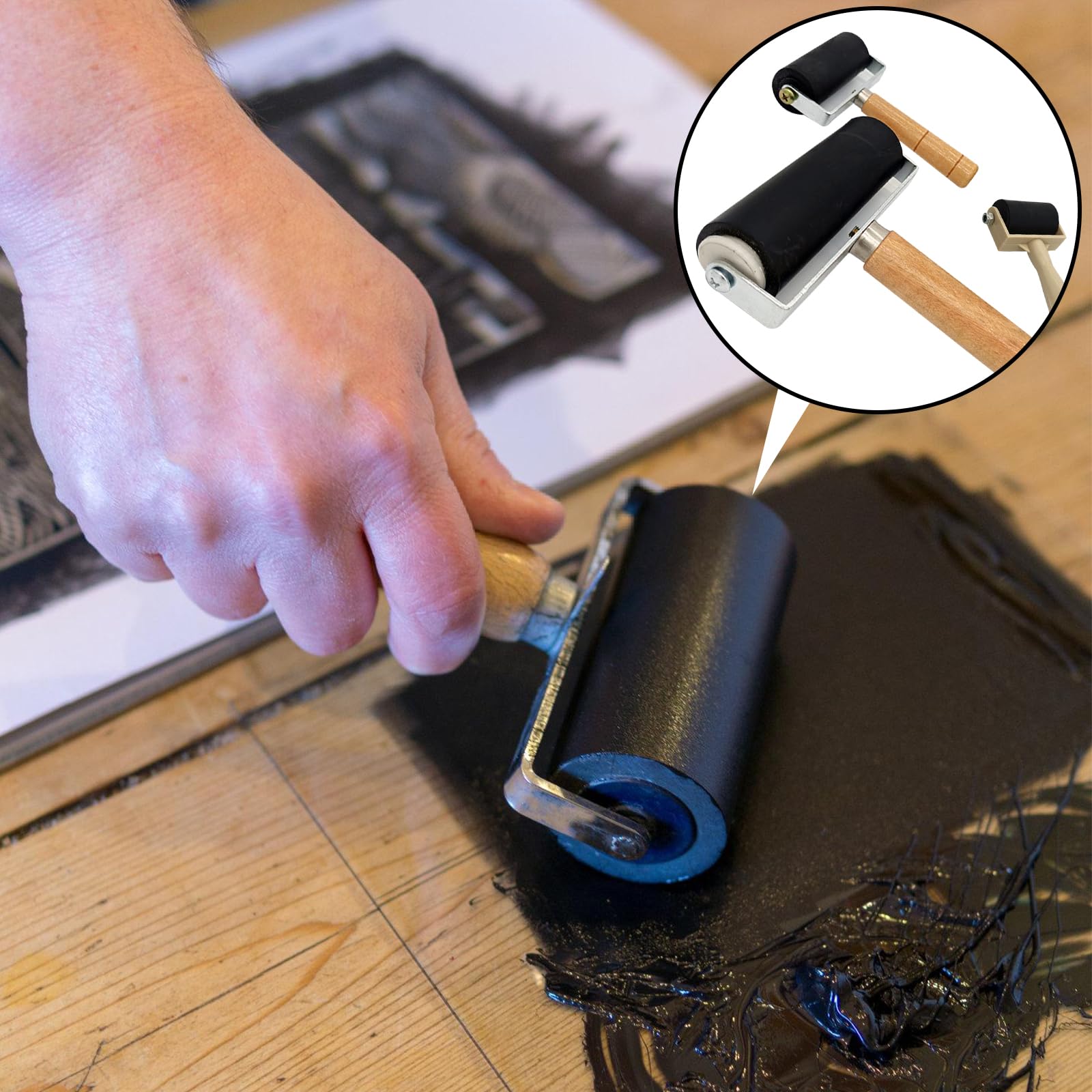 Kreative aufgepasst! Dieses 3-teilige Set Andrückrollen aus Silikon ist ein Allrounder für alle Bastel- und Druck-Projekte. Mit drei praktischen Größen: 3,5cm, 6cm und 10cm - für jede Aufgabe die passende Walze! Aus hochwertigem Silikon mit Holzgriff, der super in der Hand liegt. Perfekt für Stempeln, Linoldruck, Tapeten, Textildruck oder andere Kunstprojekte. Die Kugellager sorgen für butterweiches Rollen, die Fingerabdrücke am Griff für bessere Kontrolle. Einfach Farbe auftragen und gleichmäßig verteilen - professionelle Ergebnisse garantiert! Leicht zu reinigen mit Wasser und Seife. Ob für Schule, Hobby oder professionelle Arbeit - diese Walzen machen jede kreative Arbeit einfacher und schöner!