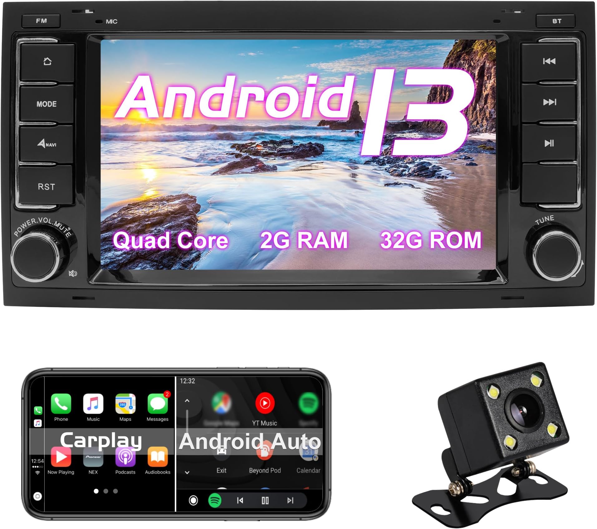 Upgrade dein VW Touareg oder T5 mit diesem modernen Android 12 Radio! 7 Zoll Touchscreen, 2GB RAM + 32GB Speicher - läuft super flüssig. Integriertes CarPlay und Android Auto, sowohl kabelgebunden als auch wireless. Navigation, Spotify, Bluetooth - alles dabei. Lenkradsteuerung kompatibel, FM Radio inklusive. Optional: DAB+ und Rückfahrkamera. Wichtig: Nicht für Dynaudio Soundsysteme geeignet! Einfach einbauen und sich über modernste Technik im Auto freuen. Deine Fahrten werden nie wieder langweilig!