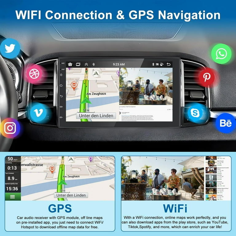 Upgrade dein Fahrzeug mit diesem 7-Zoll-Android-Autoradio! Kabelloses CarPlay (iOS) und Android Auto für freihändiges Navigieren, Telefonieren und Musikstreaming. Der kapazitive Touchscreen (600×1024 Pixel) zeigt klare 1080P-Videos und unterstützt Split-Screen. Mit Quad-Core-Prozessor, 2 GB RAM und 32 GB Speicher für flottes Multitasking. Inklusive ASP-Audio-Optimierung, zwei USB-Anschlüsse, Bluetooth, WiFi, GPS und Kompatibilität mit AHD-Rückfahrkameras. Einfach zu installieren – passe vorher die Armaturenbrett-Maße an. So wird jede Fahrt zum Entertainment-Erlebnis!