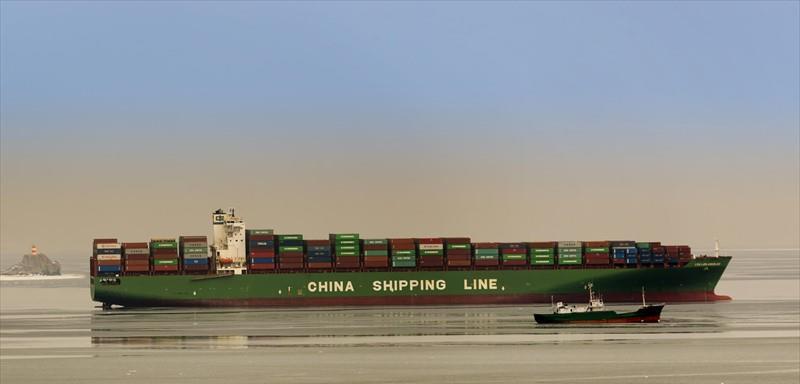 Containerschiff Xin Los Angeles Miniaturmodell - 12cm Handbemaltes Sammlerstück